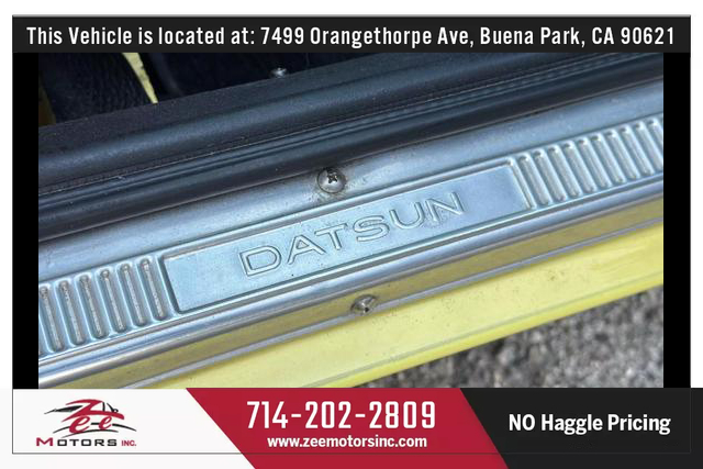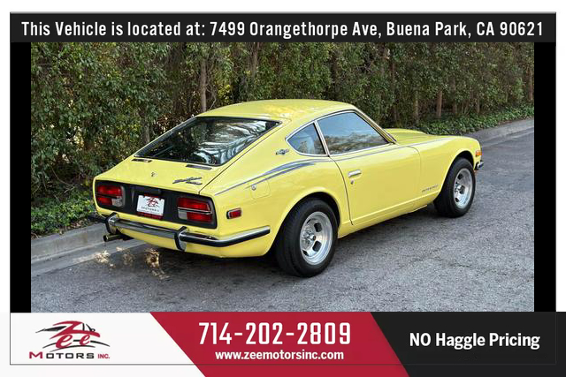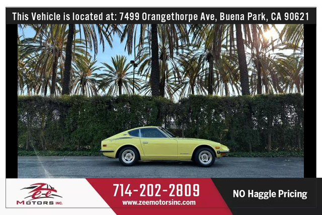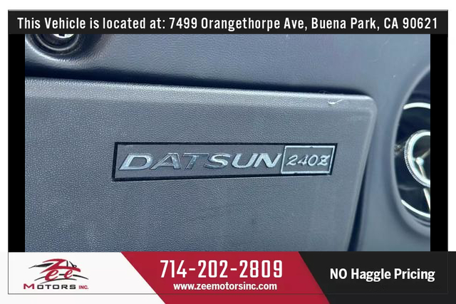 THIS VEHICLE IS LOCATED AT OUR BUENA PARK LOCATION: 7479 ORANGETHORPE AVE, BUENA PARK CA 90621. Please Call us at 657-255-4555 or 714-202-2809 or email us at BUENAPARK@ZEEMOTORSINC.COM To Check Availability. .***** Series 1 Datsun 240z ***** 4 Speed Manual Transmission ***** COLD AC ***** Major service just done ***** Fuel tank removed, cleaned and re installed ***** New Fuel Filter **** Carburetors removed, rebuilt, re installed and tuned ***** Valvetrain adjusted ***** New timing cover gasket **** New intake manifold gaskets **** New oil pan gasket **** New Front Main seal **** New Rear Main Seal **** Transmission removed, re sealed **** New transmission fluid **** New engine oil and filter **** Rear diff removed and re sealed **** new rear diff fluid **** New Spark Plugs **** New Battery **** Light bulbs replaced **** Clean dash no cracks ***** Super Clean Z inside and out... ready to go!* * Clean Title. * Clean Carfax. * No Accidents.* Very Well Maintained Vehicle, Service records available on CARFAX. * Very Clean Inside and Outside.* Passed Safety inspection and Smog Check.Attention to all buyers: All special prices are cash price and it does not include sales tax, license and registration fee, documentation fee, smog fee or any dealer add-ons / accessories. Additional financing charges may apply on approved credit. While great effort is made to ensure the accuracy of the information provided on this site, errors do occur so please verify information with a team member. This is easily done by contacting us via phone or email (Call or Text 657-346-8544)All our Vehicles are sold as is where is with no warranty expressed written or implied. The Seller shall not be responsible for the correct description authenticity genuineness or defects herein and makes no warranty in connection therewith. No allowance or set a side will be made on account of any incorrectness imperfection defect or damage. Any descriptions or representations are for identification purposes only and are not to be construed as a warranty of any type. It is the responsibility of the buyer to have thoroughly inspected the vehicle and to have satisfied himself or herself as to the condition and value and to buy based upon that judgement solely. The seller shall and will make every reasonable effort to disclose any known defects associated with this vehicle at the buyer's request prior to the close of sale. Seller assumes no responsibility for any repairs regardless of any oral statements about the vehicle