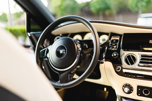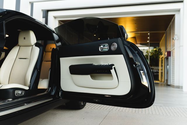CERTIFIED 2017 ROLLS-ROYCE WRAITH---- 2 OWNERS---- CLEAN CARFAX---- 2 ORIGINAL KEYS ---- ORIGINAL PAINT----NO ACCIDENTS OR DAMAGES ---- NEVER BEEN OUTSIDE OF SOCALL! ALWAYS SERVICED AT ROLLS ROYCE ORANGE COUNTY. ALWAYS STORED IN A GARAGE & HAND WASHED ONLY. YOU WILL NOT FIND A SINGLE SCRATCH ON THIS CAR. THE CLEANEST WRAITH IN THE COUNTRY WITH ONLY 8700 MILES. DIAMOND BLACK METALLIC WITH WHITE INTERIOR. THE CAR WAS PROFESSIONALLY WRAPPED 2 TONE BY A CERTIFIED ROLLS ROYCE SPECIALIST. ****TRANSFERABLE EXTENDED WARRANTY/SERVICE CONTRACT IS AVAILABLE FOR ADDITIONAL COST**** ABS brakes, AM/FM/CD/MP3 w/Navigation, Compass, DVD-Audio, Electronic Stability Control, Emergency communication system, Front dual zone A/C, Heated door mirrors, Heated front seats, Heated rear seats, Illuminated entry, Leather Heated Front Bucket Seats, Low tire pressure warning, Navigation System, Piano Black Veneer, Rear dual zone A/C, Remote keyless entry, Traction control, Wheels: 21' 5 Spoke Part Polished Forged Alloy. RWD 8-Speed Automatic 6.6L V12 DGI DOHC 48V Twin TurbochargedAdditional InformationAM/FM/CD/MP3 w/Navigation,Navigation System,18 Speakers,AM/FM radio: SiriusXM,Audio memory,CD player,DVD-Audio,MP3decoder,Radio data system,Weather band radio,Air Conditioning,Automatic temperature control,Front dual zone A/C,HVAC memory,Rear air conditioning,Rear dual zone A/C,Rear window defroster,Memory seat,Power driver seat,Power steering,Power windows,Remote keyless entry,Steering wheel memory,Steering wheel mounted audio controls,Adaptive suspension,Auto-leveling suspension,Four wheel independent suspension,Speed-sensing steering,Traction control,4-Wheel Disc Brakes,ABS brakes,Anti-whiplash front head restraints,Dual front impact airbags,Dual front side impact airbags,Emergency communication system,Front anti-roll bar,Knee airbag,Low tire pressure warning,Occupant sensing airbag,Overhead airbag,Rear anti-roll bar,Brake assist,Electronic Stability Control,Exterior Parking Camera Rear,Delay-off headlights,Headlight cleaning,High-Intensity Discharge Headlights,Panic alarm,Security system,Speed control,Auto-dimming door mirrors,Bumpers: body-color,Door auto-latch,Heated door mirrors,Power door mirrors,Auto tilt-away steering wheel,Compass,Driver door bin,Driver vanity mirror,Front reading lights,Genuine wood console insert,Genuine wood dashboard insert,Illuminated entry,Leather Heated Front Bucket Seats,Leather steering wheel,Outside temperature display,Overhead console,Passenger vanity mirror,Piano Black Veneer,Rear reading lights,Rear seat center armrest,Telescoping steering wheel,Tilt steering wheel,Trip computer,Front Bucket Seats,Front Center Armrest,Heated front seats,Heated rear seats,Power passenger seat,Passenger door bin,Wheels: 21' 5 Spoke Part Polished Forged Alloy,Rain sensing wipers,Variably intermittent wipers,Factory Warranty thru December 2022 can be extended until December 2029