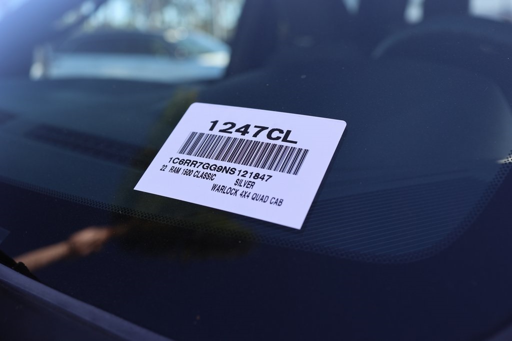 Priced below KBB Fair Purchase Price!LIFE TIME WARRANTY, LOW MILES, 1500 Classic Warlock, 4D Quad Cab, 3.6L V6 24V VVT, 8-Speed Automatic, 4WD, Billet Silver Metallic Clearcoat, Black Cloth, 2-Door Passive Entry, Front Door Locks, 6 Speakers, Alloy wheels, Body Color Door Handles, Compass, Fully automatic headlights, ParkView Rear Back-Up Camera, Pushbutton Start, Technology Package I.Clean CARFAX.CARFAX One-Owner.