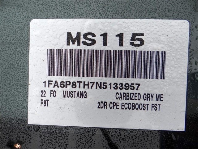 21/32 City/Highway MPG2022FordMustangEcoBoostGray MetallicEcoBoost 2.3L I4 GTDi DOHC Turbocharged VCTRWD10-Speed AutomaticTo see more quality vehicles like this one right just click on AaronFordofPoway.com or dial (858) 748-1400.