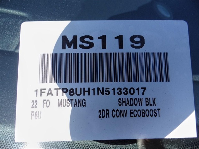 20/28 City/Highway MPG2022FordMustangEcoBoostShadow BlackEcoBoost 2.3L I4 GTDi DOHC Turbocharged VCTRWD10-Speed AutomaticTo see more quality vehicles like this one right just click on AaronFordofPoway.com or dial (858) 748-1400.