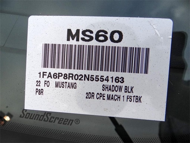 2022FordMustangMach 1Shadow Black5.0L V8 Ti-VCTRWD10-Speed AutomaticTo see more quality vehicles like this one right just click on AaronFordofPoway.com or dial (858) 748-1400.