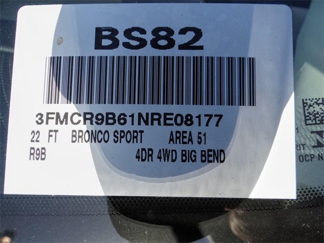 25/28 City/Highway MPG2022FordBronco SportBig BendArea 511.5L EcoBoost4WD8-Speed AutomaticTo see more quality vehicles like this one right just click on AaronFordofPoway.com or dial (858) 748-1400.