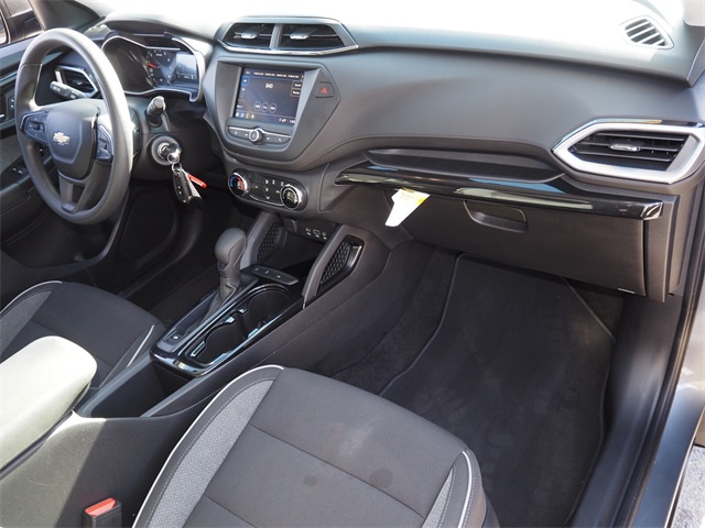 28/31 City/Highway MPGSatin Steel Metallic 2021 Chevrolet TrailBlazer LS FWD CVT 1.2L Ecotec Turbo DOHC DI w/VVTIf you don't drive here, you can't save here!Awards: * 2021 IIHS Top Safety Pick+ * Ward's 10 Best Engines and Propulsion SystemsPrice may not include recon fee. Driver Confidence & Cruise Package (Electronic Cruise Control w/Set & Resume Speed, Lane Change Alert w/Side Blind Zone Alert, Rear Cross Traffic Alert, and Rear Park Assist), Preferred Equipment Group 1LS, 4-Way Manual Front Passenger Seat Adjuster, 4-Wheel Disc Brakes, 5.45 Axle Ratio, 6 Speakers, 6-Speaker Audio System Feature, 6-Way Manual Driver Seat Adjuster, ABS brakes, Air Conditioning, Alloy wheels, AM/FM radio, Apple CarPlay/Android Auto, Auto High-beam Headlights, Brake assist, Bumpers: body-color, Cloth Seat Trim, Compass, Delay-off headlights, Driver door bin, Driver vanity mirror, Dual front impact airbags, Dual front side impact airbags, Electronic Stability Control, Emergency communication system: OnStar and Chevrolet connected services capable, Exterior Parking Camera Rear, Flat-Folding Front Passenger Seatback, Front anti-roll bar, Front Bucket Seats, Front Center Armrest, Front License Plate Bracket, Front reading lights, Front wheel independent suspension, Fully automatic headlights, Illuminated entry, Knee airbag, Low tire pressure warning, Occupant sensing airbag, Overhead airbag, Overhead console, Panic alarm, Passenger door bin, Passenger vanity mirror, Power door mirrors, Power steering, Power windows, Radio data system, Radio: Chevrolet Infotainment 3 System, Rear side impact airbag, Rear window defroster, Rear window wiper, Remote keyless entry, Ride & Handling Suspension, Security system, Split folding rear seat, Spoiler, Steering wheel mounted audio controls, Tachometer, Telescoping steering wheel, Tilt steering wheel, Traction control, Trip computer, Variably intermittent wipers, Wheels: 17" Silver-Painted Aluminum, and Wireless Apple CarPlay/Android Auto.