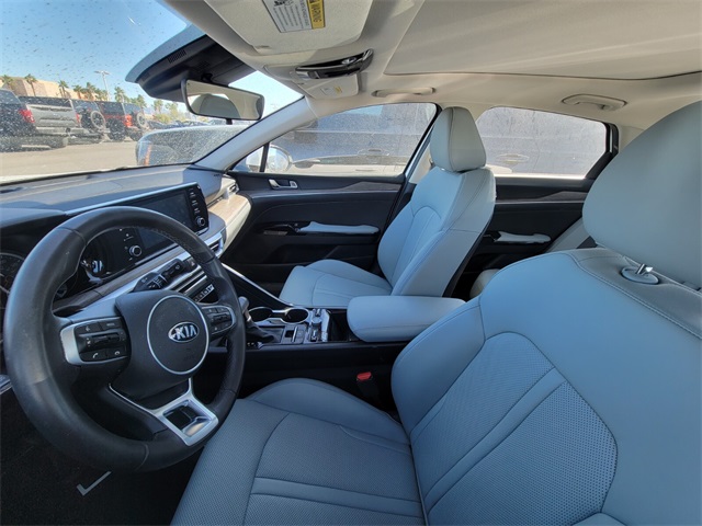 Recent Arrival!CARFAX One-Owner.Priced below KBB Fair Purchase Price!Odometer is 9973 miles below market average!27/37 City/Highway MPGGlacier White Pearl 2021 Kia K5 EX FWD 8-Speed Automatic 1.6L I4 DGIIf you don't drive here, you can't save here!Awards: * JD Power Automotive Performance, Execution and Layout (APEAL) StudyPrice may not include recon fee. EX Ash Blue Color Package, 4-Wheel Disc Brakes, 6 Speakers, ABS brakes, Air Conditioning, Alloy wheels, AM/FM radio: SiriusXM, Apple CarPlay & Android Auto, Auto High-beam Headlights, Automatic temperature control, Brake assist, Bumpers: body-color, Carpeted Floor Mats, Delay-off headlights, Driver door bin, Driver vanity mirror, Dual front impact airbags, Dual front side impact airbags, Electronic Stability Control, Emergency communication system, Four wheel independent suspension, Front anti-roll bar, Front Bucket Seats, Front Center Armrest, Front dual zone A/C, Front reading lights, Fully automatic headlights, Heated & Ventilated Front Bucket Seats, Heated door mirrors, Heated front seats, Illuminated entry, Knee airbag, Leatherette Seat Trim, Low tire pressure warning, Occupant sensing airbag, Outside temperature display, Overhead airbag, Overhead console, Panic alarm, Passenger door bin, Passenger vanity mirror, Power door mirrors, Power driver seat, Power moonroof, Power steering, Power windows, Radio data system, Radio: AM/FM/MP3/SiriusXM Audio System, Rear anti-roll bar, Rear reading lights, Rear seat center armrest, Rear side impact airbag, Rear window defroster, Remote keyless entry, Security system, Speed control, Speed-sensing steering, Split folding rear seat, Steering wheel mounted audio controls, Tachometer, Telescoping steering wheel, Tilt steering wheel, Traction control, Trip computer, Variably intermittent wipers, Ventilated front seats, and Wheels: 7.5J x 18" Gray Machined Finish Alloy.