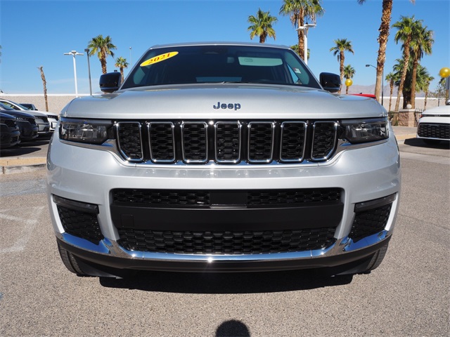 CARFAX One-Owner.Odometer is 3466 miles below market average!Silver Zynith 2021 Jeep Grand Cherokee L Limited 4WD 8-Speed Automatic 3.6L V6 24V VVTIf you don't drive here, you can't save here!Price may not include recon fee. Quick Order Package 22E, 10.1" Touchscreen Display, 3.45 Rear Axle Ratio, 3rd row seats: split-bench, 4-Wheel Disc Brakes, 506 Watt Amplifier, 6 Speakers, 9 Amplified Speakers w/Subwoofer, ABS brakes, Air Conditioning, Alloy wheels, AM/FM radio: SiriusXM w/360L, Anti-whiplash front head restraints, Apple CarPlay, Apple CarPlay/Android Auto, Audio memory, Auto High-beam Headlights, Automatic temperature control, Brake assist, Bridgestone Brand Tires, Bumpers: body-color, Capri Leather Seats, Compass, Connected Travel & Traffic Services, Connectivity - US/Canada, Delay-off headlights, Disassociated Touchscreen Display, Driver door bin, Driver vanity mirror, Dual front impact airbags, Dual front side impact airbags, Electronic Stability Control, Emergency communication system, Four wheel independent suspension, Front anti-roll bar, Front Bucket Seats, Front Center Armrest w/Storage, Front dual zone A/C, Front fog lights, Front reading lights, Fully automatic headlights, Garage door transmitter, Google Android Auto, GPS Antenna Input, GPS Navigation, HD Radio, Heated door mirrors, Heated front seats, Heated rear seats, Heated steering wheel, Illuminated entry, Integrated Center Stack Radio, Integrated Voice Command w/Bluetooth, Knee airbag, Leather steering wheel, Low tire pressure warning, Manual Fold Seatbacks, Memory seat, Normal Duty Suspension, Occupant sensing airbag, Outside temperature display, Overhead airbag, Overhead console, Panic alarm, ParkView Rear Back-Up Camera, Passenger door bin, Passenger vanity mirror, Power door mirrors, Power driver seat, Power Liftgate, Power passenger seat, Power steering, Power windows, Radio data system, Radio: Uconnect 5 Nav w/10.1" Display, Radio: Uconnect 5 w/8.4" Display, Rear air conditioning, Rear anti-roll bar, Rear reading lights, Rear window defroster, Rear window wiper, Reclining 3rd row seat, Remote keyless entry, Roof rack: rails only, Security system, SiriusXM Satellite Radio, SiriusXM w/360L, Speed control, Speed-Sensitive Wipers, Split folding rear seat, Spoiler, Steering wheel mounted audio controls, Tachometer, Telescoping steering wheel, Tilt steering wheel, Traction control, Trip computer, Turn signal indicator mirrors, USB Host Flip, Variably intermittent wipers, Voltmeter, Wheels: 18" x 8.0" Fully Painted Aluminum 2, and Wheels: 20" x 8.5" Polished/Painted Aluminum (DISC)