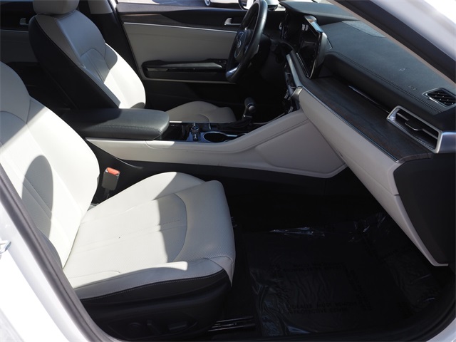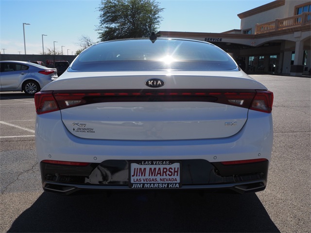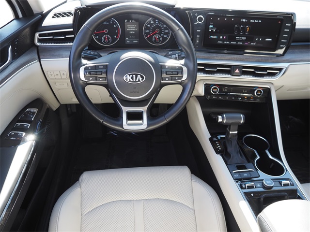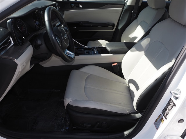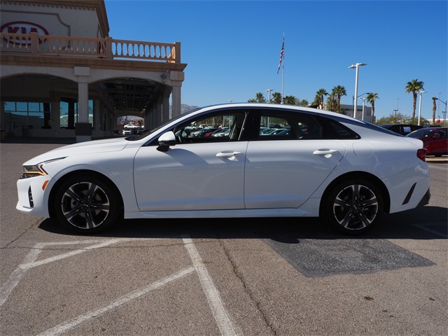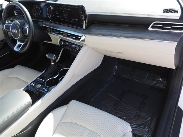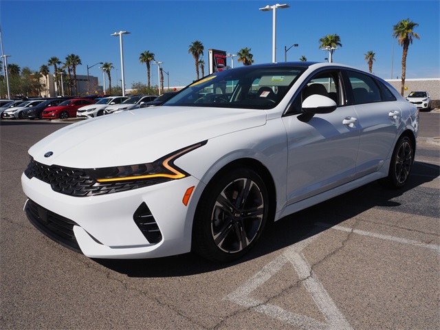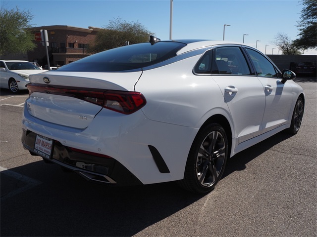 Priced below KBB Fair Purchase Price!Odometer is 5667 miles below market average!27/37 City/Highway MPGGlacier White Pearl 2021 Kia K5 EX FWD 8-Speed Automatic 1.6L I4 DGIIf you don't drive here, you can't save here!Awards: * JD Power Automotive Performance, Execution and Layout (APEAL) StudyPrice may not include recon fee. EX Premium Package (10-Way Power Passenger Seat, Forward Collision Avoidance-Assist - Cyclist, Forward Collision Avoidance-Assist - Junction Turn, Heated Steering Wheel, Highway Driving Assist, LED Rear Combi Lamps, Memory Driver's Seat & Outside Mirrors, Navigation-Based Smart Cruise Control - Curve, Outside Mirrors w/LED Turn Signals, Parking Collision Avoidance-Assist - Reverse, Power Child Lock, Radio: AM/FM/SiriusXM Bose Premium Audio System, Safe Exit Assist w/Lock, and Smart Cruise Control w/Stop & Go), 4-Wheel Disc Brakes, 6 Speakers, ABS brakes, Air Conditioning, Alloy wheels, AM/FM radio: SiriusXM, Apple CarPlay & Android Auto, Auto High-beam Headlights, Automatic temperature control, Brake assist, Bumpers: body-color, Carpeted Floor Mats, Delay-off headlights, Driver door bin, Driver vanity mirror, Dual front impact airbags, Dual front side impact airbags, Electronic Stability Control, Emergency communication system, Four wheel independent suspension, Front anti-roll bar, Front Bucket Seats, Front Center Armrest, Front dual zone A/C, Front reading lights, Fully automatic headlights, Heated & Ventilated Front Bucket Seats, Heated door mirrors, Heated front seats, Illuminated entry, Knee airbag, Leatherette Seat Trim, Low tire pressure warning, Occupant sensing airbag, Outside temperature display, Overhead airbag, Overhead console, Panic alarm, Passenger door bin, Passenger vanity mirror, Power door mirrors, Power driver seat, Power moonroof, Power steering, Power windows, Radio data system, Radio: AM/FM/MP3/SiriusXM Audio System, Rear anti-roll bar, Rear reading lights, Rear seat center armrest, Rear side impact airbag, Rear window defroster, Remote keyless entry, Security system, Speed control, Speed-sensing steering, Split folding rear seat, Steering wheel mounted audio controls, Tachometer, Telescoping steering wheel, Tilt steering wheel, Traction control, Trip computer, Variably intermittent wipers, Ventilated front seats, and Wheels: 7.5J x 18" Gray Machined Finish Alloy.