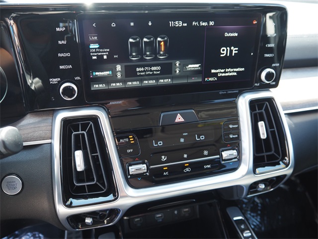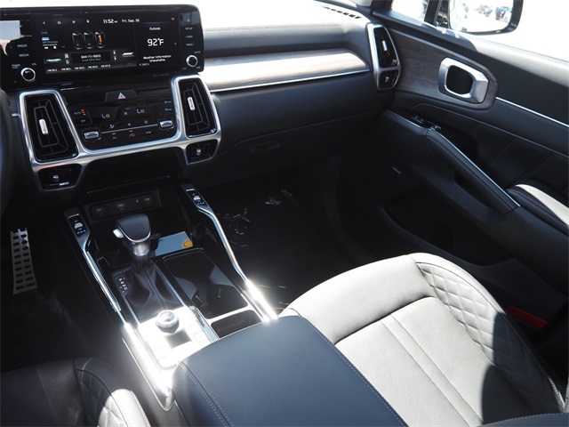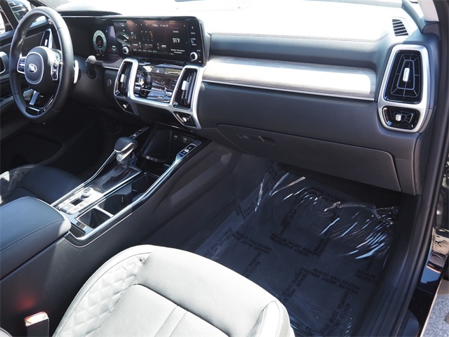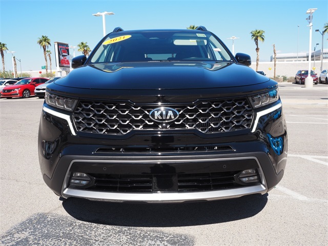 CARFAX One-Owner.Odometer is 7088 miles below market average!21/28 City/Highway MPGEbony Black 2021 Kia Sorento SX-Prestige AWD 8-Speed DCT 2.5L I4 DGI Turbocharged DOHC 16V LEV3-ULEV70 281hp AWD.If you don't drive here, you can't save here!Price may not include recon fee. AWD, 12 Speakers, 3.316 Axle Ratio, 3rd row seats: split-bench, 4-Wheel Disc Brakes, ABS brakes, Air Conditioning, Alloy wheels, AM/FM radio: SiriusXM, Apple CarPlay & Android Auto, Auto High-beam Headlights, Auto-dimming Rear-View mirror, Automatic temperature control, Brake assist, Bumpers: body-color, Carpeted Floor Mats, Delay-off headlights, Driver door bin, Driver vanity mirror, Dual front impact airbags, Dual front side impact airbags, Electronic Stability Control, Emergency communication system: UVO link, Four wheel independent suspension, Front anti-roll bar, Front Bucket Seats, Front Center Armrest, Front dual zone A/C, Front fog lights, Front reading lights, Fully automatic headlights, Heated & Ventilated Front Bucket Seats, Heated door mirrors, Heated front seats, Heated steering wheel, Illuminated entry, Knee airbag, Leather steering wheel, Low tire pressure warning, Navigation System, Occupant sensing airbag, Outside temperature display, Overhead airbag, Overhead console, Panic alarm, Passenger door bin, Passenger vanity mirror, Perforated Genuine Leather Seat Trim, Power door mirrors, Power driver seat, Power Liftgate, Power moonroof, Power passenger seat, Power steering, Power windows, Radio data system, Radio: AM/FM Premium Bose Audio System w/Nav, Rear air conditioning, Rear anti-roll bar, Rear reading lights, Rear seat center armrest, Rear window defroster, Rear window wiper, Remote keyless entry, Roof rack, Security system, Speed control, Speed-sensing steering, Split folding rear seat, Spoiler, Steering wheel mounted audio controls, Tachometer, Telescoping steering wheel, Tilt steering wheel, Traction control, Trip computer, Turn signal indicator mirrors, Variably intermittent wipers, Ventilated front seats, and Wheels: 20" Grey Finish Alloy.