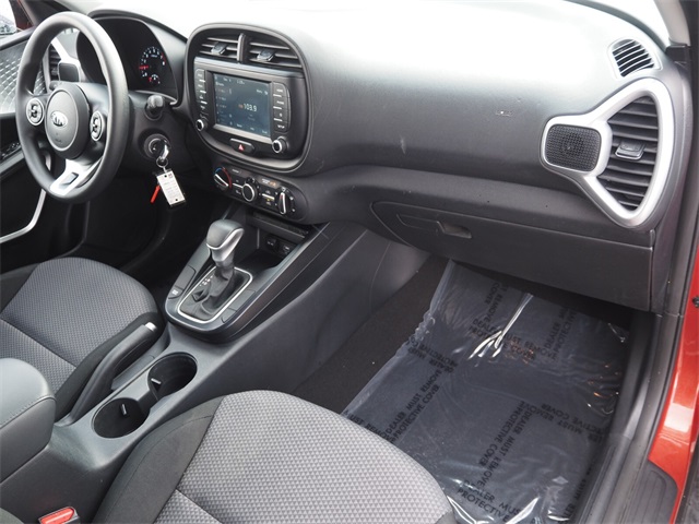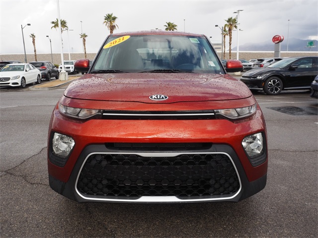 29/35 City/Highway MPGMars Orange 2021 Kia Soul LX FWD IVT 2.0L I4 MPI DOHC 16V LEV3-ULEV125 147hpIf you don't drive here, you can't save here!Price may not include recon fee. 4-Wheel Disc Brakes, 6 Speakers, ABS brakes, Air Conditioning, AM/FM radio, Apple CarPlay & Android Auto, Brake assist, Bumpers: body-color, Carpeted Floor Mats, Cloth Seat Trim, Delay-off headlights, Driver door bin, Driver vanity mirror, Dual front impact airbags, Dual front side impact airbags, Electronic Stability Control, Exterior Parking Camera Rear, Front anti-roll bar, Front Bucket Seats, Front Center Armrest, Front reading lights, Front wheel independent suspension, Fully automatic headlights, Low tire pressure warning, Occupant sensing airbag, Outside temperature display, Overhead airbag, Overhead console, Passenger door bin, Passenger vanity mirror, Power door mirrors, Power steering, Power windows, Radio: AM/FM/MP3 Audio System, Rear window defroster, Rear window wiper, Remote keyless entry, Speed control, Speed-sensing steering, Split folding rear seat, Steering wheel mounted audio controls, Tachometer, Telescoping steering wheel, Tilt steering wheel, Traction control, Trip computer, Variably intermittent wipers, and Wheels: 16" x 6.5 Steel.