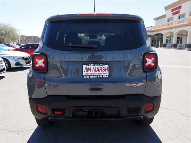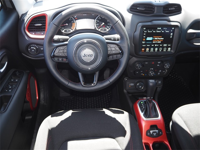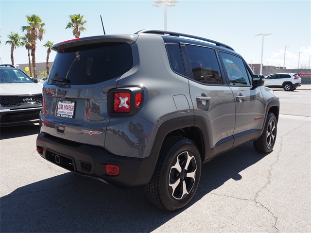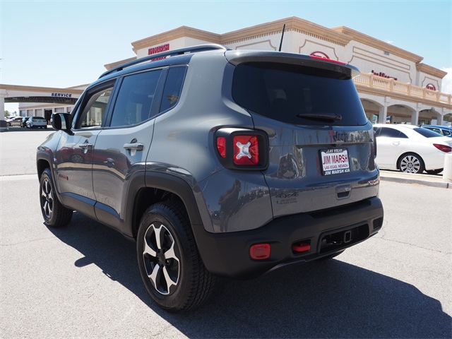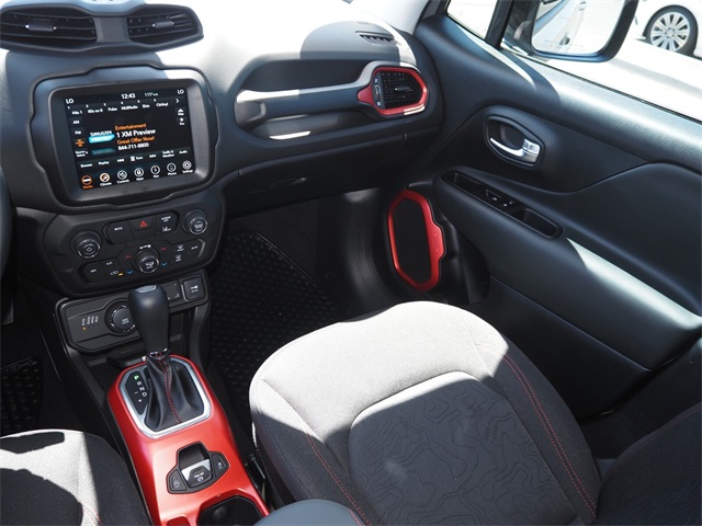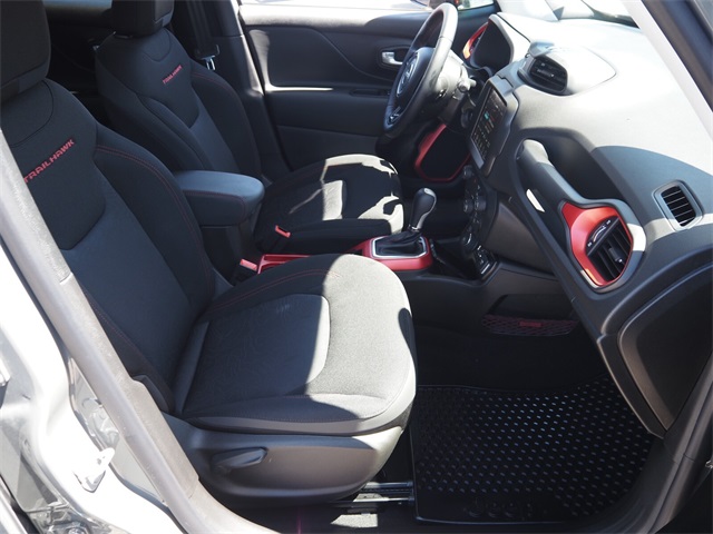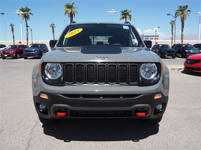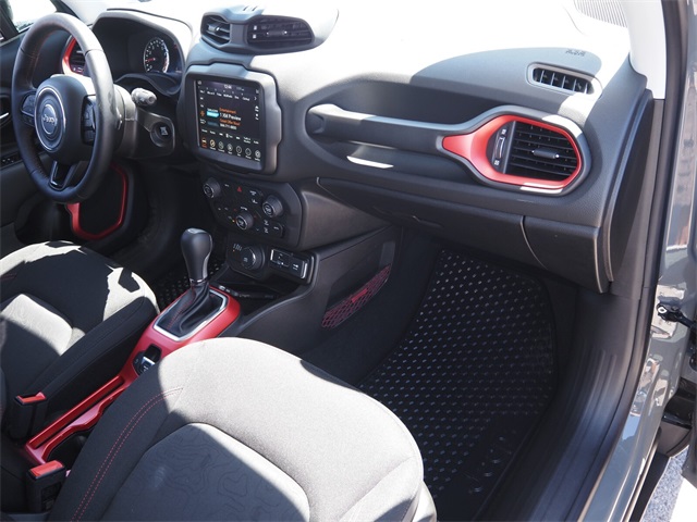 22/27 City/Highway MPGSting-Gray Clearcoat 2022 Jeep Renegade Trailhawk 4WD 9-Speed 948TE Automatic 1.3L I4If you don't drive here, you can't save here!Price may not include recon fee. Quick Order Package 22C, Trailer Tow Group (4 Pin Wiring Harness and Class III Receiver Hitch), 17" x 6.5" Aluminum Wheels, 4.585 Final Drive Ratio, 4-Wheel Disc Brakes, 6 Speakers, ABS brakes, Air Conditioning, Alloy wheels, AM/FM radio: SiriusXM, Anti-whiplash front head restraints, Apple CarPlay/Android Auto, Auto-dimming Rear-View mirror, Automatic temperature control, Brake assist, Compass, Delay-off headlights, Driver door bin, Driver vanity mirror, Dual front impact airbags, Dual front side impact airbags, Electronic Stability Control, Emergency communication system: SiriusXM Guardian, Four wheel independent suspension, Front anti-roll bar, Front Bucket Seats, Front Center Armrest, Front dual zone A/C, Front fog lights, Front reading lights, Fully automatic headlights, Heated door mirrors, Heated front seats, Heated steering wheel, Illuminated entry, Knee airbag, Leather Shift Knob, Leather steering wheel, Low tire pressure warning, Navigation System, Normal Duty Suspension, Occupant sensing airbag, Outside temperature display, Overhead airbag, Panic alarm, ParkView Rear Back-Up Camera, Passenger door bin, Passenger vanity mirror, Power door mirrors, Power driver seat, Power steering, Power windows, Premium Cloth Low-Back Bucket Seats, Radio data system, Radio: Uconnect 4C Nav w/8.4" Display, Rain sensing wipers, Rear anti-roll bar, Rear seat center armrest, Rear window defroster, Rear window wiper, Remote keyless entry, Roof rack: rails only, Security system, Speed control, Split folding rear seat, Spoiler, Steering wheel mounted audio controls, Tachometer, Telescoping steering wheel, Tilt steering wheel, Traction control, Trip computer, Turn signal indicator mirrors, Variably intermittent wipers, and Voltmeter.