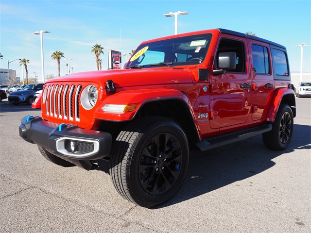 New Price!CARFAX One-Owner.Priced below KBB Fair Purchase Price!Firecracker Red Clearcoat 2022 Jeep Wrangler Unlimited Sahara 4xe 4WD 8-Speed Automatic 2.0L I4 DOHCIf you don't drive here, you can't save here!Price may not include recon fee. Quick Order Package 29P, Trailer Tow & HD Electrical Group (7 & 4 Pin Wiring Harness, 700 Amp Maintenance Free Battery, Auxiliary Switches, and Class II Receiver Hitch), 3.73 Rear Axle Ratio, 4-Wheel Disc Brakes, 9 Speakers, ABS brakes, Air Conditioning, Alloy wheels, AM/FM radio, Anti-Spin Differential Rear Axle, Apple CarPlay/Android Auto, Auto-dimming Rear-View mirror, Automatic temperature control, Black 3-Piece Hard Top, Brake assist, Compass, Delay-off headlights, Driver door bin, Driver vanity mirror, Dual front impact airbags, Dual front side impact airbags, Electronic Stability Control, Emergency communication system: SiriusXM Guardian, Freedom Panel Storage Bag, Front anti-roll bar, Front Bucket Seats, Front Center Armrest w/Storage, Front dual zone A/C, Front fog lights, Front License Plate Bracket, Front reading lights, Fully automatic headlights, Garage door transmitter, Heated door mirrors, Illuminated entry, Integrated roll-over protection, Leather Shift Knob, Leather steering wheel, Low tire pressure warning, Navigation System, No Soft Top, Occupant sensing airbag, Outside temperature display, Panic alarm, ParkView Rear Back-Up Camera, Passenger door bin, Passenger vanity mirror, Power door mirrors, Power steering, Power windows, Premium McKinley Trimmed Seats, Radio data system, Radio: Uconnect 4C Nav w/8.4" Display, Rear anti-roll bar, Rear reading lights, Rear seat center armrest, Rear Window Defroster, Rear Window Wiper/Washer, Remote keyless entry, Security system, Speed control, Split folding rear seat, Sport Suspension, Steering wheel mounted audio controls, Tachometer, Telescoping steering wheel, Tilt steering wheel, Traction control, Trip computer, Variably intermittent wipers, Voltmeter, and Wheels: 20" x 8" Fully Painted Aluminum.