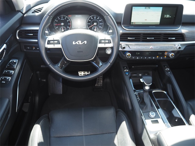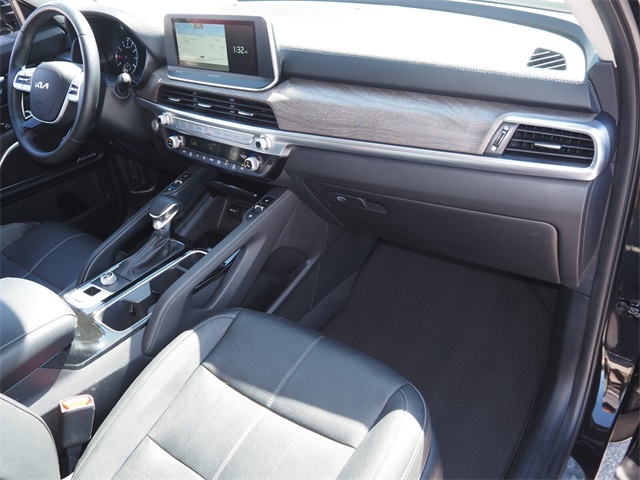 CARFAX One-Owner.20/26 City/Highway MPGBlack Copper 2022 Kia Telluride SX FWD 8-Speed Automatic 3.8L V6 DOHCIf you don't drive here, you can't save here!Price may not include recon fee. 10 Speakers, 3.648 Axle Ratio, 3rd row seats: split-bench, 4-Wheel Disc Brakes, ABS brakes, Air Conditioning, Alloy wheels, AM/FM radio: SiriusXM, Apple CarPlay & Android Auto, Auto High-beam Headlights, Auto-dimming Rear-View mirror, Automatic temperature control, Brake assist, Bumpers: body-color, Carpeted Floor Mats, Compass, Delay-off headlights, Driver door bin, Driver vanity mirror, Dual front impact airbags, Dual front side impact airbags, Electronic Stability Control, Emergency communication system: 911 Connect, Four wheel independent suspension, Front anti-roll bar, Front Bucket Seats, Front Center Armrest, Front dual zone A/C, Front fog lights, Front reading lights, Fully automatic headlights, Garage door transmitter: HomeLink, harman/kardon® Speakers, Heated & Ventilated Front Bucket Seats, Heated door mirrors, Heated front seats, Illuminated entry, Knee airbag, Leather Seat Trim, Leather Shift Knob, Leather steering wheel, Low tire pressure warning, Memory seat, Navigation System, Occupant sensing airbag, Outside temperature display, Overhead airbag, Overhead console, Panic alarm, Passenger door bin, Passenger vanity mirror, Power door mirrors, Power driver seat, Power Liftgate, Power moonroof, Power passenger seat, Power steering, Power windows, Radio data system, Radio: AM/FM harman/kardon Audio System, Rear air conditioning, Rear anti-roll bar, Rear audio controls, Rear window defroster, Rear window wiper, Remote keyless entry, Roof rack: rails only, Security system, Speed control, Speed-sensing steering, Split folding rear seat, Spoiler, Steering wheel mounted audio controls, Tachometer, Telescoping steering wheel, Tilt steering wheel, Traction control, Trip computer, Turn signal indicator mirrors, Variably intermittent wipers, Ventilated front seats, and Wheels: 20" x 7.5" Black Alloy.