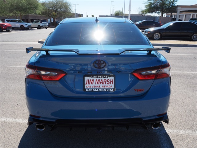 Priced below KBB Fair Purchase Price!Odometer is 2601 miles below market average!22/31 City/Highway MPGBlue 2022 Toyota Camry TRD V6 FWD 8-Speed Automatic 3.5L V6 DOHC 24VIf you don't drive here, you can't save here!Price may not include recon fee. 4-Wheel Disc Brakes, 6 Speakers, ABS brakes, Air Conditioning, Alloy wheels, AM/FM radio: SiriusXM, Auto High-beam Headlights, Automatic temperature control, Brake assist, Bumpers: body-color, Delay-off headlights, Driver door bin, Driver vanity mirror, Dual front impact airbags, Dual front side impact airbags, Electronic Stability Control, Emergency communication system: Safety Connect with 1-year trial, Exterior Parking Camera Rear, Fabric Seat Trim w/Sport SofTex, Four wheel independent suspension, Front anti-roll bar, Front Bucket Seats, Front Center Armrest, Front dual zone A/C, Front reading lights, Fully automatic headlights, Heated door mirrors, Illuminated entry, Knee airbag, Leather Shift Knob, Low tire pressure warning, Occupant sensing airbag, Outside temperature display, Overhead airbag, Overhead console, Panic alarm, Passenger door bin, Passenger vanity mirror, Power door mirrors, Power driver seat, Power steering, Power windows, Radio data system, Radio: AM/FM Audio System, Rear anti-roll bar, Rear reading lights, Rear seat center armrest, Rear side impact airbag, Rear window defroster, Remote keyless entry, Security system, Speed control, Speed-sensing steering, Spoiler, Steering wheel mounted audio controls, Tachometer, Telescoping steering wheel, Tilt steering wheel, Traction control, TRD Boot Shift Lever & Knob, TRD Bumper, TRD LED Low Headlamp, TRD Luggage Door, TRD Rear Spoiler, TRD Wheel Cap Center Ornament, Trip computer, Turn signal indicator mirrors, Variably intermittent wipers, and Wheels: 8.5J x 19" TRD Matte Black Alloy.