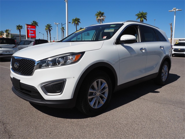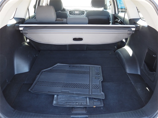Odometer is 3797 miles below market average!21/29 City/Highway MPGSnow White Pearl 2016 Kia Sorento LX FWD 6-Speed Automatic with Sportmatic 2.4L DOHCIf you don't drive here, you can't save here!Awards: * 2016 KBB.com 10 Best Used Midsize SUVs Under $15,000 * 2016 KBB.com 10 Best SUVs Under $25,000 * 2016 KBB.com 10 Best Certified Pre-Owned 3-Row SUVs Under $30,000Price may not include recon fee. 3.51 Axle Ratio, 4-Wheel Disc Brakes, 6 Speakers, ABS brakes, Air Conditioning, Alloy wheels, AM/FM radio: SiriusXM, Brake assist, Bumpers: body-color, Cargo Cover, Cargo Net, Carpet Floor Mats (5 Seat), CD player, Delay-off headlights, Driver door bin, Driver vanity mirror, Dual front impact airbags, Dual front side impact airbags, Electronic Stability Control, Exterior Parking Camera Rear, Four wheel independent suspension, Front anti-roll bar, Front Bucket Seats, Front Center Armrest, Front reading lights, Fully automatic headlights, Heated door mirrors, Illuminated entry, Low tire pressure warning, MP3 decoder, Occupant sensing airbag, Overhead airbag, Overhead console, Panic alarm, Passenger door bin, Passenger vanity mirror, Power door mirrors, Power steering, Power windows, Radio: AM/FM/CD/MP3/SiriusXM, Rear anti-roll bar, Rear seat center armrest, Rear window defroster, Rear window wiper, Remote keyless entry, Roof rack: rails only, Security system, Speed control, Speed-sensing steering, Split folding rear seat, Spoiler, Steering wheel mounted audio controls, Tachometer, Telescoping steering wheel, Tilt steering wheel, Traction control, Trip computer, Turn signal indicator mirrors, Variably intermittent wipers, Wheels: 17" x 7.0 Alloy, and YES Essentials Cloth Seat Trim.