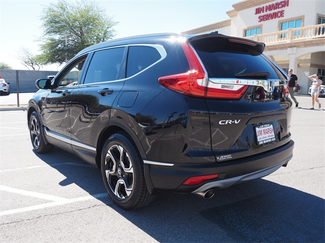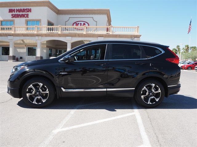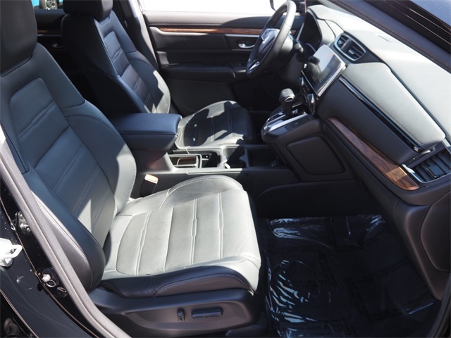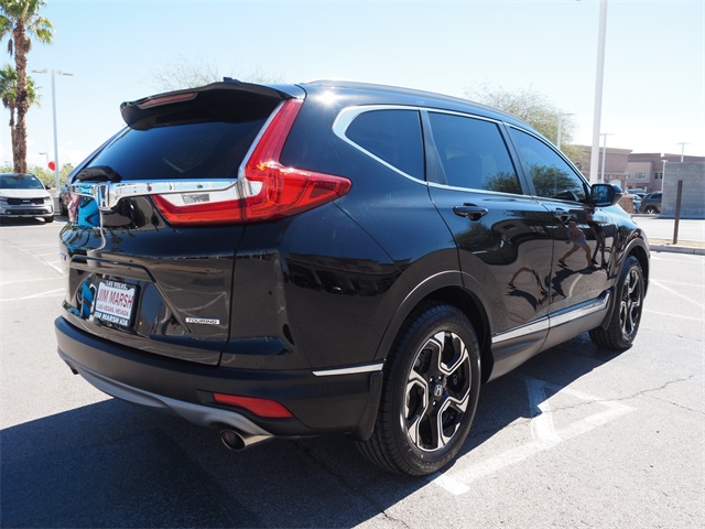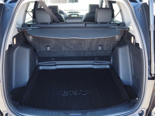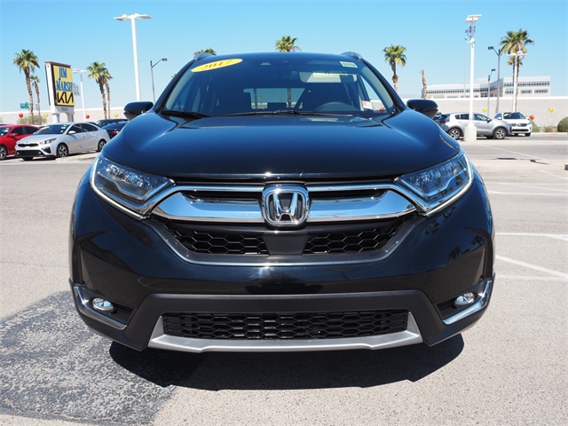 CARFAX One-Owner.Priced below KBB Fair Purchase Price!Odometer is 558 miles below market average!28/34 City/Highway MPGBlack 2017 Honda CR-V Touring FWD CVT 1.5L I4 DOHC 16VIf you don't drive here, you can't save here!Awards: * JD Power Automotive Performance, Execution and Layout (APEAL) Study * 2017 KBB.com 10 Most Awarded Brands * 2017 KBB.com Brand Image AwardsKelley Blue Book Brand Image Awards are based on the Brand Watch(tm) study from Kelley Blue Book Market Intelligence. Award calculated among non-luxury shoppers. For more information, visit www.kbb.com. Kelley Blue Book is a registered trademark of Kelley Blue Book Co., Inc.Price may not include recon fee. 18" Alloy Wheels, 4-Wheel Disc Brakes, 5.64 Axle Ratio, 9 Speakers, ABS brakes, Air Conditioning, Alloy wheels, AM/FM radio: SiriusXM, Apple CarPlay/Android Auto, Auto High-beam Headlights, Auto-dimming Rear-View mirror, Automatic temperature control, Blind spot sensor: Blind Spot Information (BSI) System warning, Brake assist, Bumpers: body-color, Compass, Delay-off headlights, Distance pacing cruise control: Adaptive Cruise Control with Low-Speed Follow, Driver door bin, Driver vanity mirror, Dual front impact airbags, Dual front side impact airbags, Electronic Stability Control, Exterior Parking Camera Rear, Four wheel independent suspension, Front anti-roll bar, Front Bucket Seats, Front Center Armrest, Front dual zone A/C, Front fog lights, Front reading lights, Fully automatic headlights, Garage door transmitter: HomeLink, Heated door mirrors, Heated Front Bucket Seats, Heated front seats, Illuminated entry, Leather Seat Trim, Leather Shift Knob, Low tire pressure warning, Memory seat, Navigation System, Occupant sensing airbag, Outside temperature display, Overhead airbag, Overhead console, Panic alarm, Passenger door bin, Passenger vanity mirror, Power door mirrors, Power driver seat, Power Liftgate, Power moonroof, Power passenger seat, Power steering, Power windows, Radio data system, Radio: AM/FM/HD/SiriusXM Audio System, Rain sensing wipers, Rear anti-roll bar, Rear seat center armrest, Rear window defroster, Rear window wiper, Remote keyless entry, Roof rack: rails only, Security system, Speed control, Speed-sensing steering, Speed-Sensitive Wipers, Split folding rear seat, Spoiler, Steering wheel mounted audio controls, Tachometer, Telescoping steering wheel, Tilt steering wheel, Traction control, Trip computer, Turn signal indicator mirrors, and Variably intermittent wipers.