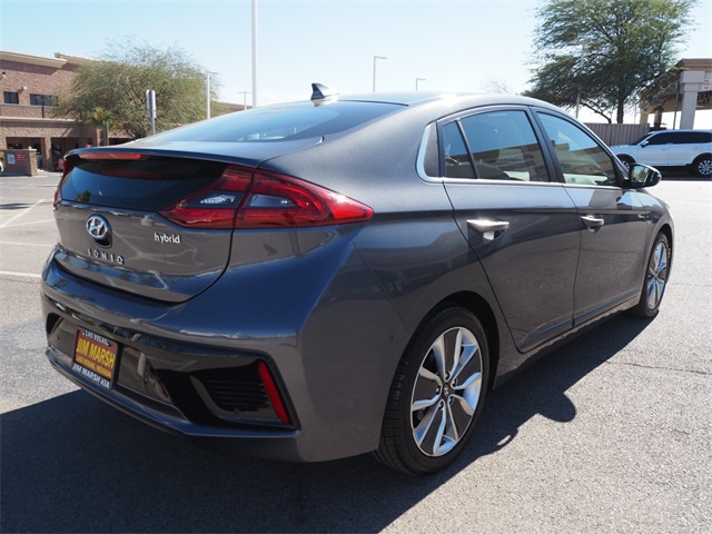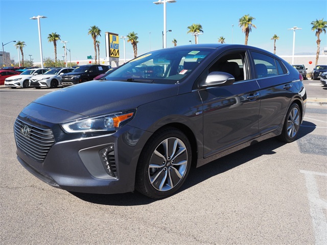 CARFAX One-Owner.Priced below KBB Fair Purchase Price!Odometer is 42164 miles below market average!55/54 City/Highway MPGSummit Gray 2018 Hyundai Ioniq Hybrid Limited FWD 6-Speed EcoShift Dual Clutch 1.6L I4 DGI Hybrid DOHC 16V LEV3-SULEV30 1.6L I4 DGI Hybrid DOHC 16V LEV3-SULEV30.If you don't drive here, you can't save here!Awards: * 2018 KBB.com 10 Most Awarded Brands * 2018 KBB.com 5-Year Cost to Own AwardsPrice may not include recon fee. Blue Link Guidance Package, Limited Ultimate Package 03, 1.6L I4 DGI Hybrid DOHC 16V LEV3-SULEV30, 4-Wheel Disc Brakes, 6 Speakers, ABS brakes, Air Conditioning, Alloy wheels, AM/FM radio: SiriusXM, Apple CarPlay & Android Auto, Auto-dimming Rear-View mirror, Automatic Emergency Braking, Automatic temperature control, Blind spot sensor: Blind Spot Detection (BSD) with Lane Change Assist (LCA) warning, Bodyside moldings, Brake assist, Bumpers: body-color, Cargo Tray, Carpet Floor Mats, Compass, Delay-off headlights, Driver door bin, Driver vanity mirror, Driver's Integrated Memory Seat, Dual front impact airbags, Dual front side impact airbags, Electronic Stability Control, Emergency communication system: Blue Link, Exterior Parking Camera Rear, Floor Console-Mounted Rear Vents, Four wheel independent suspension, Front anti-roll bar, Front Bucket Seats, Front Center Armrest, Front dual zone A/C, Front reading lights, Fully automatic headlights, Garage door transmitter: HomeLink, Headlights w/Dynamic Bending Light Function (DBL), Heated door mirrors, Heated Front Bucket Seats, Heated front seats, High-Intensity Discharge Headlights, Illuminated entry, Knee airbag, Lane Keep Assist System, Leather Seating Surfaces, Leather Shift Knob, Low tire pressure warning, Occupant sensing airbag, Outside temperature display, Overhead airbag, Overhead console, Panic alarm, Passenger door bin, Passenger vanity mirror, Power door mirrors, Power driver seat, Power moonroof, Power steering, Power windows, Radio: 7" Touch-Screen Display Audio, Radio: 8" Touch-Screen Display Audio, Rear Parking Sensors, Rear seat center armrest, Rear window defroster, Remote keyless entry, Security system, Smart Cruise Control, Speed control, Speed-sensing steering, Split folding rear seat, Spoiler, Steering wheel mounted audio controls, Tachometer, Telescoping steering wheel, Tilt steering wheel, Traction control, Trip computer, Turn signal indicator mirrors, Variably intermittent wipers, Wheels: 17" Eco-spoke Alloy, and Wireless Device Charging.