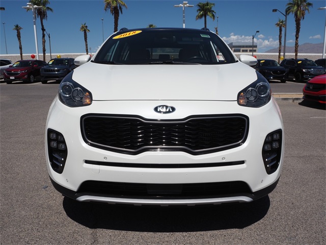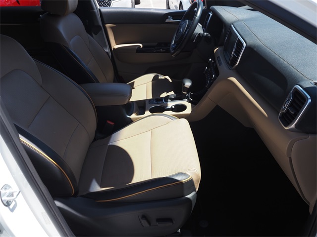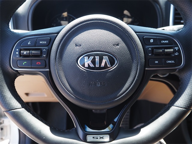 Priced below KBB Fair Purchase Price!21/26 City/Highway MPGSnow White Pearl 2018 Kia Sportage SX FWD 6-Speed Automatic Electronic with Overdrive 2.0L I4 DGI TurbochargedIf you don't drive here, you can't save here!Awards: * JD Power Vehicle Dependability Study (VDS) * 2018 KBB.com 10 Best SUVs Under $25,000Price may not include recon fee. 19" Alloy Wheels, 3.32 Axle Ratio, 4-Wheel Disc Brakes, 8 Speakers, ABS brakes, Air Conditioning, Alloy wheels, AM/FM radio: SiriusXM, Apple CarPlay & Android Auto, Auto High-beam Headlights, Auto-dimming Rear-View mirror, Automatic temperature control, Brake assist, Bumpers: body-color, Cargo Cover, Carpet Floor Mats, Delay-off headlights, Driver door bin, Driver vanity mirror, Dual front impact airbags, Dual front side impact airbags, Electronic Stability Control, Emergency communication system: 911 Connect, Exterior Parking Camera Rear, Four wheel independent suspension, Front anti-roll bar, Front Bucket Seats, Front Center Armrest, Front dual zone A/C, Front fog lights, Front reading lights, Fully automatic headlights, Garage door transmitter: HomeLink, Heated & Ventilated Front Bucket Seats, Heated door mirrors, Heated front seats, Heated steering wheel, High intensity discharge headlights: Bi-Xenon, Illuminated entry, Leather Seat Trim, Leather Shift Knob, Low tire pressure warning, Navigation System, Occupant sensing airbag, Outside temperature display, Overhead airbag, Overhead console, Panic alarm, Passenger door bin, Passenger vanity mirror, Power door mirrors, Power driver seat, Power Liftgate, Power moonroof, Power passenger seat, Power steering, Power windows, Radio: AM/FM/MP3/SiriusXM, Rear anti-roll bar, Rear seat center armrest, Rear window defroster, Rear window wiper, Remote keyless entry, Roof rack: rails only, Security system, Speed control, Speed-sensing steering, Split folding rear seat, Spoiler, Sport steering wheel, Steering wheel mounted audio controls, SX Beige Leather Interior, Tachometer, Telescoping steering wheel, Tilt steering wheel, Traction control, Trip computer, Turn signal indicator mirrors, Variably intermittent wipers, and Ventilated front seats.