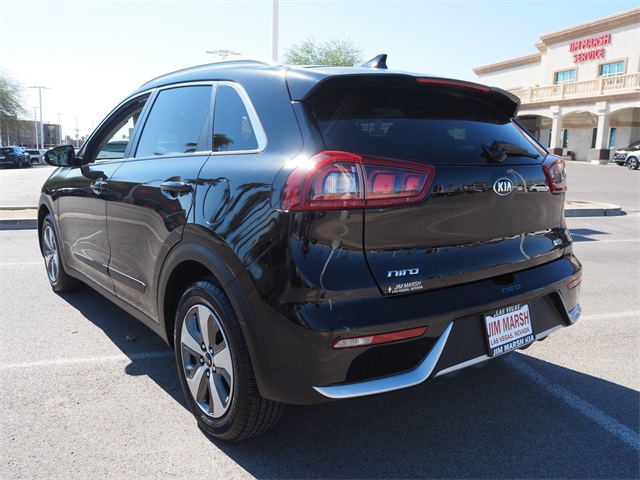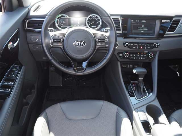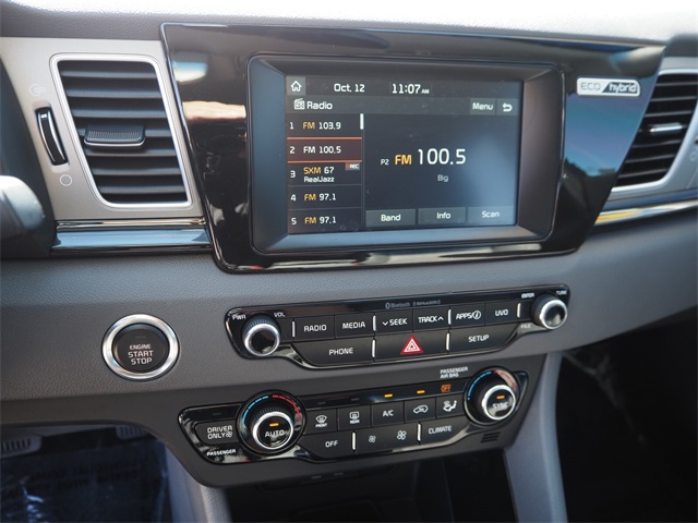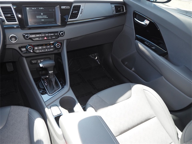 CARFAX One-Owner.Priced below KBB Fair Purchase Price!Odometer is 21286 miles below market average!51/46 City/Highway MPGAurora Black Pearl 2019 Kia Niro EX FWD 6-Speed Dual Clutch 1.6L I4 DGI DOHC 16V LEV3-SULEV30If you don't drive here, you can't save here!Price may not include recon fee. EX Advanced Technology Package (10-Way Power Driver's Seat w/Lumbar Support, Autonomous Emergency Braking, Forward Collision Warning System, Lane Keep Assist System, and Smart Cruise Control), 3.227 Axle Ratio, 4-Wheel Disc Brakes, 6 Speakers, ABS brakes, Air Conditioning, Alloy wheels, AM/FM radio: SiriusXM, Apple CarPlay & Android Auto, Auto-dimming Rear-View mirror, Automatic temperature control, Bodyside moldings, Brake assist, Bumpers: body-color, Carpeted Floor Mats, Cloth & Leather-Trimmed Seats, Delay-off headlights, Driver door bin, Driver vanity mirror, Dual front impact airbags, Dual front side impact airbags, Electronic Stability Control, Emergency communication system: UVO eServices 911 Connect, Exterior Parking Camera Rear, Four wheel independent suspension, Front anti-roll bar, Front Bucket Seats, Front Center Armrest, Front dual zone A/C, Front fog lights, Front reading lights, Fully automatic headlights, Heated door mirrors, Heated Front Bucket Seats, Heated front seats, Illuminated entry, Knee airbag, Leather Shift Knob, Low tire pressure warning, Occupant sensing airbag, Outside temperature display, Overhead airbag, Overhead console, Panic alarm, Passenger door bin, Passenger vanity mirror, Power door mirrors, Power steering, Power windows, Radio: AM/FM/MP3/SiriusXM Satellite, Rear anti-roll bar, Rear Bumper Applique, Rear seat center armrest, Rear window defroster, Rear window wiper, Remote keyless entry, Roof rack: rails only, Security system, Speed control, Speed-sensing steering, Split folding rear seat, Spoiler, Steering wheel mounted audio controls, Telescoping steering wheel, Tilt steering wheel, Traction control, Trip computer, Turn signal indicator mirrors, Variably intermittent wipers, and Wheels: 16" Alloy w/Full Covers.
