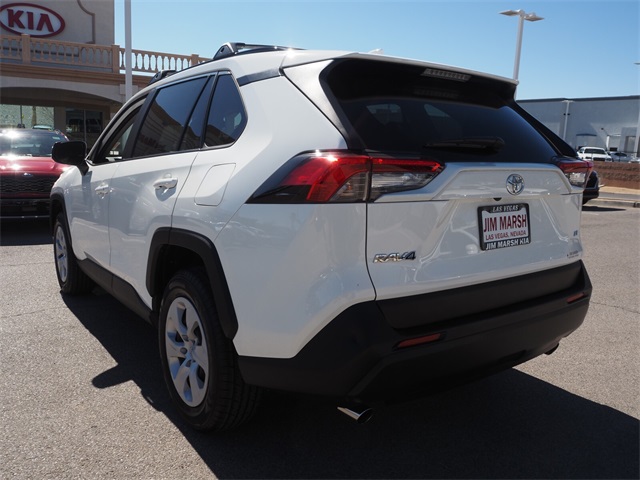 Priced below KBB Fair Purchase Price!26/35 City/Highway MPGWhite 2019 Toyota RAV4 LE FWD 8-Speed Automatic 2.5L 4-Cylinder DOHC Dual VVT-iIf you don't drive here, you can't save here!Awards: * 2019 KBB.com 10 Best SUVs Under $30,000 * 2019 KBB.com 10 Favorite New-for-2019 Cars * 2019 KBB.com Best Resale Value Awards * 2019 KBB.com Brand Image AwardsPrice may not include recon fee. 17" Wheels, 4-Wheel Disc Brakes, 6 Speakers, ABS brakes, Air Conditioning, AM/FM radio, Auto High-beam Headlights, Axle Ratio: 3.177, Brake assist, Bumpers: body-color, Driver door bin, Driver vanity mirror, Dual front impact airbags, Dual front side impact airbags, Electronic Stability Control, Emergency communication system: Entune Safety Connect, Exterior Parking Camera Rear, Fabric Seat Trim, Four wheel independent suspension, Front anti-roll bar, Front Bucket Seats, Front Center Armrest, Front reading lights, Illuminated entry, Knee airbag, Low tire pressure warning, Occupant sensing airbag, Outside temperature display, Overhead airbag, Overhead console, Panic alarm, Passenger door bin, Passenger vanity mirror, Power door mirrors, Power steering, Power windows, Radio data system, Radio: Entune 3.0 Audio, Rear anti-roll bar, Rear seat center armrest, Rear window defroster, Rear window wiper, Remote keyless entry, Roof rack: rails only, Speed control, Speed-sensing steering, Split folding rear seat, Spoiler, Steering wheel mounted audio controls, Tachometer, Telescoping steering wheel, Tilt steering wheel, Traction control, and Trip computer.