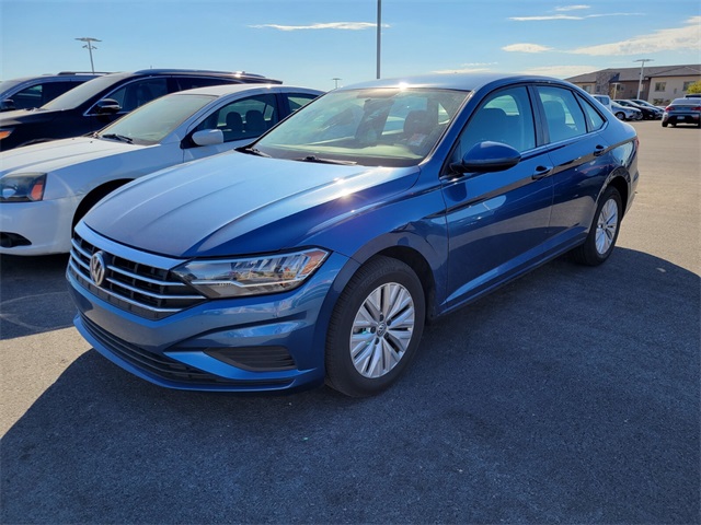 CARFAX One-Owner.30/40 City/Highway MPGBlue 2019 Volkswagen Jetta 1.4T S FWD 8-Speed Automatic with Tiptronic 1.4L TSI Titan Black w/Cloth Seat Trim.If you don't drive here, you can't save here!Awards: * 2019 KBB.com 10 Coolest New Cars Under $20,000 * 2019 KBB.com 10 Best Sedans Under $30,000Price may not include recon fee. Titan Black w/Cloth Seat Trim, 4 Speakers, 4-Wheel Disc Brakes, ABS brakes, Air Conditioning, Alloy wheels, AM/FM radio, Brake assist, Bumpers: body-color, Cloth Seat Trim, Delay-off headlights, Driver door bin, Driver vanity mirror, Dual front impact airbags, Dual front side impact airbags, Electronic Stability Control, Exterior Parking Camera Rear, Front anti-roll bar, Front Bucket Seats, Front Center Armrest, Front Comfort Seats, Front wheel independent suspension, Fully automatic headlights, Illuminated entry, Low tire pressure warning, Occupant sensing airbag, Outside temperature display, Overhead airbag, Panic alarm, Passenger door bin, Passenger vanity mirror, Power door mirrors, Power steering, Power windows, Radio data system, Radio: Composition Color w/6.5" Touchscreen, Rear anti-roll bar, Rear reading lights, Rear window defroster, Remote keyless entry, Speed control, Speed-sensing steering, Split folding rear seat, Steering wheel mounted audio controls, Tachometer, Telescoping steering wheel, Tilt steering wheel, Traction control, Trip computer, Variably intermittent wipers, and Wheels: 16" Silver Rama.