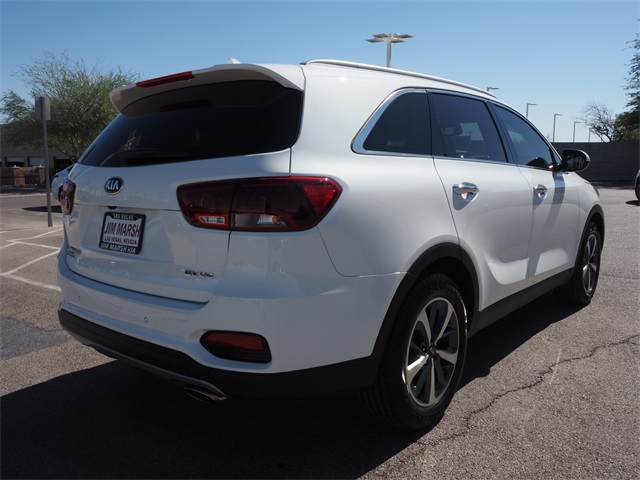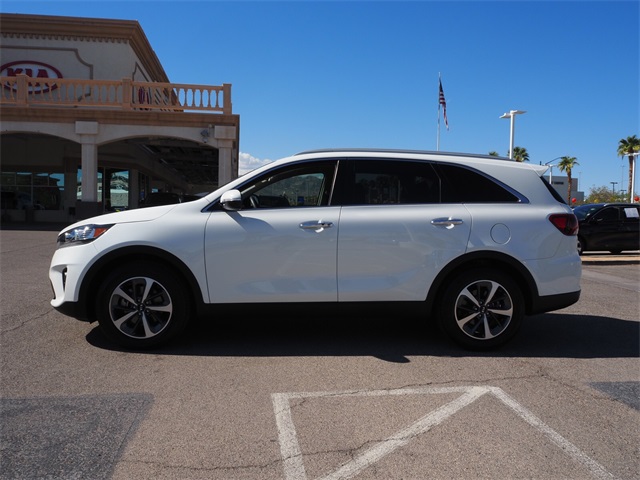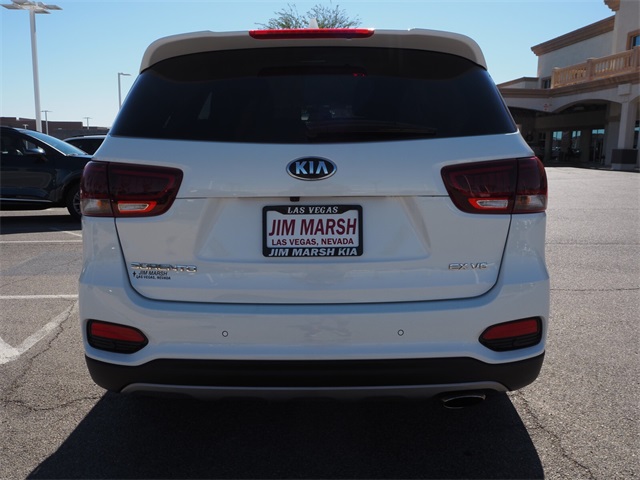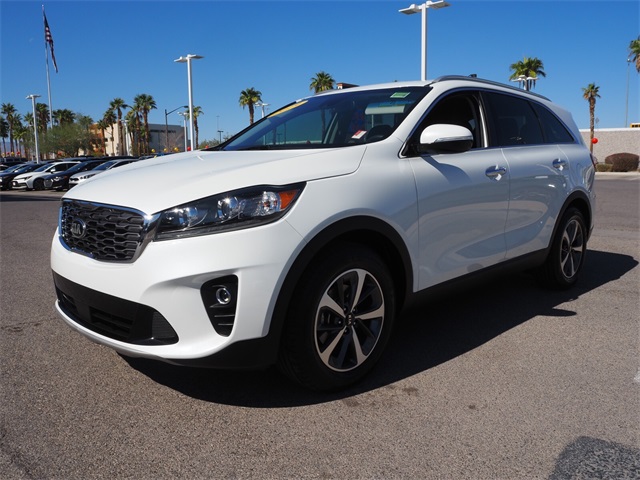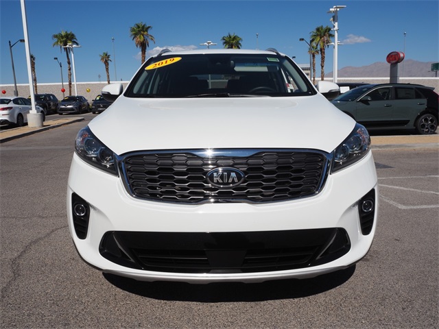 CARFAX One-Owner.Odometer is 4556 miles below market average!19/26 City/Highway MPGSnow White Pearl 2019 Kia Sorento EX FWD 8-Speed Automatic V6If you don't drive here, you can't save here!Price may not include recon fee. 18" x 7.5" Alloy Wheels, 3.32 Axle Ratio, 3rd row seats: split-bench, 4-Wheel Disc Brakes, 6 Speakers, ABS brakes, Air Conditioning, Alloy wheels, AM/FM radio: SiriusXM, Apple CarPlay & Android Auto, Auto-dimming Rear-View mirror, Automatic temperature control, Brake assist, Bumpers: body-color, Carpeted Floor Mats (7-Passenger), Delay-off headlights, Driver door bin, Driver vanity mirror, Dual front impact airbags, Dual front side impact airbags, Electronic Stability Control, Emergency communication system: UVO eServices, Exterior Parking Camera Rear, Four wheel independent suspension, Front anti-roll bar, Front Bucket Seats, Front Center Armrest, Front dual zone A/C, Front fog lights, Front reading lights, Fully automatic headlights, Garage door transmitter: HomeLink, Heated door mirrors, Heated Front Bucket Seats, Heated front seats, Illuminated entry, Leather Seat Trim, Leather steering wheel, Low tire pressure warning, Occupant sensing airbag, Outside temperature display, Overhead airbag, Overhead console, Panic alarm, Passenger door bin, Passenger vanity mirror, Power door mirrors, Power driver seat, Power Liftgate, Power passenger seat, Power steering, Power windows, Radio data system, Radio: UVO eServices, Rear air conditioning, Rear anti-roll bar, Rear seat center armrest, Rear window defroster, Rear window wiper, Remote keyless entry, Roof rack: rails only, Security system, Speed control, Speed-sensing steering, Split folding rear seat, Spoiler, Steering wheel mounted audio controls, Tachometer, Telescoping steering wheel, Tilt steering wheel, Traction control, Trip computer, Turn signal indicator mirrors, and Variably intermittent wipers.