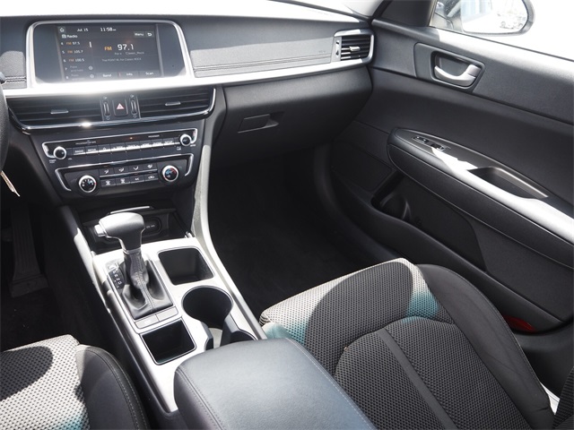 CARFAX One-Owner.24/32 City/Highway MPGSnow White Pearl 2020 Kia Optima LX FWD 6-Speed Automatic with Sportmatic 2.4L I4 DGI DOHC Black Cloth.If you don't drive here, you can't save here!Price may not include recon fee. Black Cloth, 4-Wheel Disc Brakes, 6 Speakers, 6.5J x 16" Silver Alloy Wheels, ABS brakes, Air Conditioning, Alloy wheels, AM/FM radio, Anti-whiplash front head restraints, Apple CarPlay & Android Auto, Auto High-beam Headlights, Brake assist, Bumpers: body-color, Carpet Floor Mats, Cloth Seat Trim, Delay-off headlights, Driver door bin, Driver vanity mirror, Dual front impact airbags, Dual front side impact airbags, Electronic Stability Control, Four wheel independent suspension, Front anti-roll bar, Front Bucket Seats, Front Center Armrest, Front reading lights, Fully automatic headlights, Heated door mirrors, Illuminated entry, Knee airbag, Low tire pressure warning, Occupant sensing airbag, Outside temperature display, Overhead airbag, Overhead console, Panic alarm, Passenger door bin, Passenger vanity mirror, Power door mirrors, Power steering, Power windows, Radio data system, Radio: AM/FM/MP3 Audio System, Rear anti-roll bar, Rear seat center armrest, Rear window defroster, Remote keyless entry, Security system, Speed control, Speed-sensing steering, Split folding rear seat, Steering wheel mounted audio controls, Tachometer, Telescoping steering wheel, Tilt steering wheel, Traction control, Trip computer, Turn signal indicator mirrors, and Variably intermittent wipers.