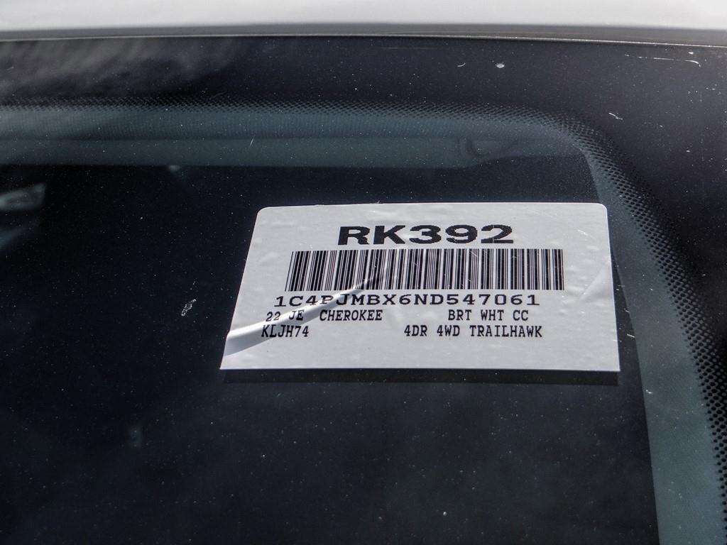 Bright White Clearcoat 2022 Jeep Cherokee Trailhawk 4WD 9-Speed 948TE Automatic 3.2L V6 Price includes: $750 - 2022 National Retail Consumer Cash (Type 1/B) 22CN1. Exp. 02/28/2023