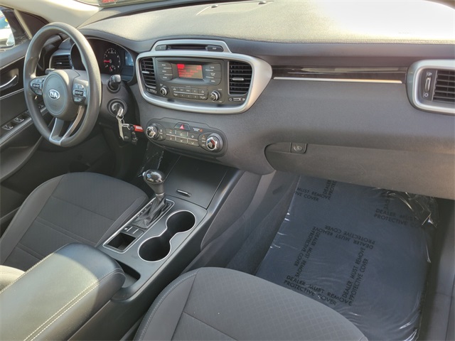 CARFAX One-Owner.Priced below KBB Fair Purchase Price!21/28 City/Highway MPGEbony Black 2017 Kia Sorento L FWD 6-Speed Automatic with Sportmatic 2.4L DOHCIf you don't drive here, you can't save here!Awards: * 2017 KBB.com 10 Most Awarded BrandsPrice may not include recon fee. 3.51 Axle Ratio, 4-Wheel Disc Brakes, 6 Speakers, ABS brakes, Air Conditioning, Alloy wheels, AM/FM radio: SiriusXM, Anti-whiplash front head restraints, Brake assist, Bumpers: body-color, Cargo Cover, Carpet Floor Mats (5 Seat), CD player, Delay-off headlights, Driver door bin, Driver vanity mirror, Dual front impact airbags, Dual front side impact airbags, Electronic Stability Control, Four wheel independent suspension, Front anti-roll bar, Front Bucket Seats, Front Center Armrest, Front reading lights, Heated door mirrors, Illuminated entry, Low tire pressure warning, MP3 decoder, Occupant sensing airbag, Outside temperature display, Overhead airbag, Overhead console, Panic alarm, Passenger door bin, Passenger vanity mirror, Power door mirrors, Power steering, Power windows, Radio: AM/FM/CD/MP3/SiriusXM, Rear anti-roll bar, Rear seat center armrest, Rear window defroster, Rear window wiper, Remote keyless entry, Security system, Speed control, Speed-sensing steering, Split folding rear seat, Spoiler, Steering wheel mounted audio controls, Tachometer, Telescoping steering wheel, Tilt steering wheel, Traction control, Trip computer, Turn signal indicator mirrors, Variably intermittent wipers, Wheels: 17" x 7.0 Alloy, and YES Essentials Cloth Seat Trim.