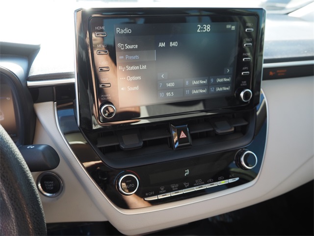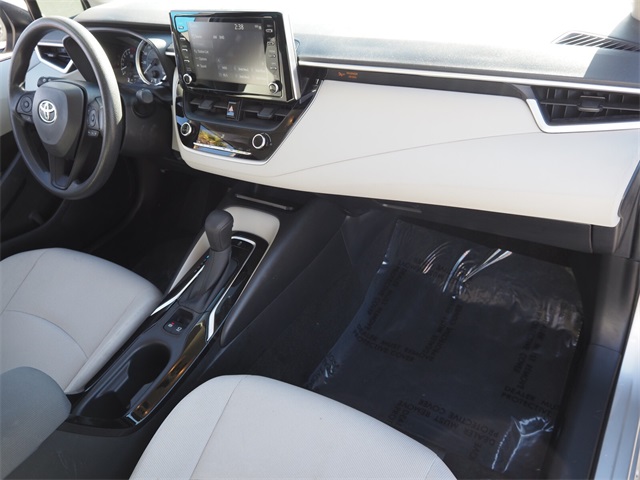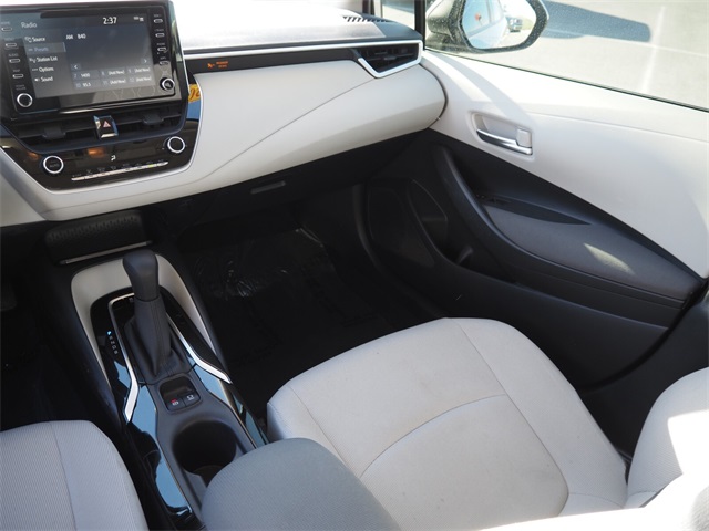 Priced below KBB Fair Purchase Price!Odometer is 34441 miles below market average!30/38 City/Highway MPGSilver 2020 Toyota Corolla LE FWD CVT 1.8L I4 DOHC 16VIf you don't drive here, you can't save here!Awards: * 2020 KBB.com 10 Coolest New Cars Under $20,000Price may not include recon fee. 4-Wheel Disc Brakes, 6 Speakers, ABS brakes, Air Conditioning, AM/FM radio: SiriusXM, Auto High-beam Headlights, Automatic temperature control, Brake assist, Bumpers: body-color, Delay-off headlights, Driver door bin, Driver vanity mirror, Dual front impact airbags, Dual front side impact airbags, Electronic Stability Control, Emergency communication system: Safety Connect with 3-year trial, Exterior Parking Camera Rear, Four wheel independent suspension, Front anti-roll bar, Front Bucket Seats, Front Center Armrest, Front reading lights, Fully automatic headlights, Illuminated entry, Knee airbag, Low tire pressure warning, Occupant sensing airbag, Outside temperature display, Overhead airbag, Panic alarm, Passenger door bin, Passenger vanity mirror, Power door mirrors, Power steering, Power windows, Premium Fabric Seat Trim, Radio data system, Radio: Audio AM/FM w/Navigation, Rear anti-roll bar, Rear seat center armrest, Rear window defroster, Remote keyless entry, Security system, Speed control, Split folding rear seat, Steering wheel mounted audio controls, Tachometer, Telescoping steering wheel, Tilt steering wheel, Traction control, Trip computer, Variably intermittent wipers, and Wheels: 16" Wide Vent Steel.