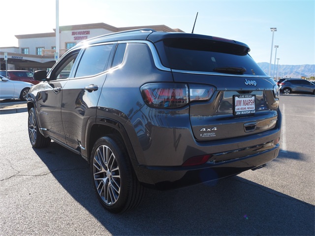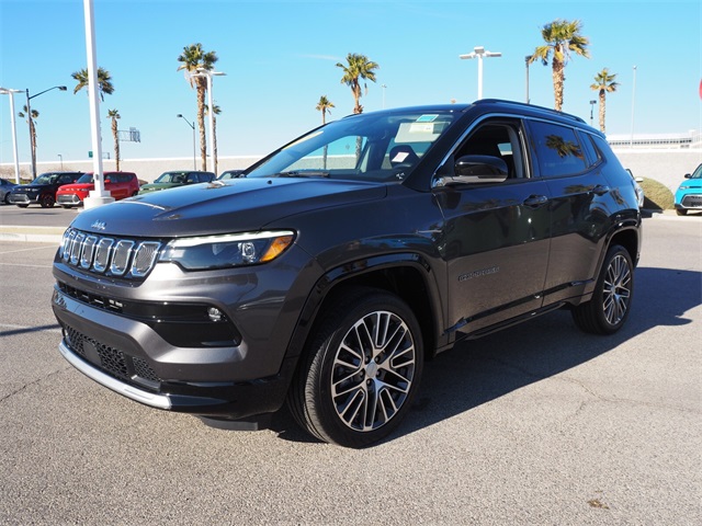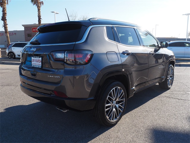 Priced below KBB Fair Purchase Price!Odometer is 4541 miles below market average!22/30 City/Highway MPGGranite Crystal Metallic Clearcoat 2022 Jeep Compass Limited 4WD 9-Speed 948TE Automatic 2.4L I4 4WD.If you don't drive here, you can't save here!Price may not include recon fee. Elite Group (10.1" Touchscreen Display, 115V Auxiliary Power Outlet, 2nd Row Heated Seats, 2nd Row USB Type A/C Charge Only, 4G LTE Wi-Fi Hot Spot, Alexa Built-In, Cluster 10.25" TFT Color Display, Connected Travel & Traffic Services, Disassociated Touchscreen Display, Driver Seat Memory, Foot Activated Open 'N Go Liftgate, For Details, Visit DriveUconnect.com, For More Info, Call 800-643-2112, Global Telematics Box Module (TBM), Gloss Black Door Cladding, Gloss Black Exterior Sill, Gloss Black Fascias, Gloss Black Wheel Flares, GPS Navigation, HD Radio, Integrated Voice Command w/Bluetooth, LED Low/Highbeam Projector Headlamps, No Satellite Coverage HI/AK/PR/VI/GU, Power 2-Way Passenger Lumbar Adjust, Power 8-Way Adjust Front Passenger Seat, Power Liftgate, Premium Leather Trimmed Bucket Seats, Premium LED Fog Lamps, Premium Taillamps, Radio: Uconnect 5 Nav w/10.1" Display, Reversible Carpet/Vinyl Cargo Mat, SiriusXM Guardian - Included Trial (B), SiriusXM Radio Service, SiriusXM Satellite Radio, SiriusXM w/360L, Ventilated Front Seats, and Wheels: 19" x 7.5" Painted Diamond Cut Aluminum), Quick Order Package 2GG, Sun and Sound Group (Power Front/Fixed Rear Full Sunroof and Premium Alpine Speaker System), 4WD, 3.73 Axle Ratio, 4-Wheel Disc Brakes, 6 Speakers, ABS brakes, Air Conditioning, Alloy wheels, AM/FM radio: SiriusXM, Anti-whiplash front head restraints, Auto High-beam Headlights, Auto-dimming Rear-View mirror, Automatic temperature control, Brake assist, Bumpers: body-color, Compass, Delay-off headlights, Driver door bin, Driver vanity mirror, Dual front impact airbags, Dual front side impact airbags, Electronic Stability Control, Emergency communication system: SiriusXM Guardian, Four wheel independent suspension, Front anti-roll bar, Front Bucket Seats, Front Center Armrest w/Storage, Front dual zone A/C, Front fog lights, Front License Plate Bracket, Front reading lights, Fully automatic headlights, Gloss Black Exterior Mirrors, Heated door mirrors, Heated front seats, Heated steering wheel, Illuminated entry, Knee airbag, Leather Shift Knob, Leather Trimmed Bucket Seats, Low tire pressure warning, Occupant sensing airbag, Outside temperature display, Overhead airbag, Overhead console, Panic alarm, ParkView Rear Back-Up Camera, Passenger door bin, Passenger vanity mirror, Power door mirrors, Power driver seat, Power steering, Power windows, Radio: Uconnect 5 w/10.1" Display, Rain sensing wipers, Rear anti-roll bar, Rear seat center armrest, Rear window defroster, Rear window wiper, Remote keyless entry, Roof rack: rails only, Security system, Speed control, Split folding rear seat, Spoiler, Steering wheel mounted audio controls, Tachometer, Telescoping steering wheel, Tilt steering wheel, Traction control, Trip computer, Turn signal indicator mirrors, Variably intermittent wipers, and Wheels: 18" x 7" Painted Diamond Cut AluminuM.