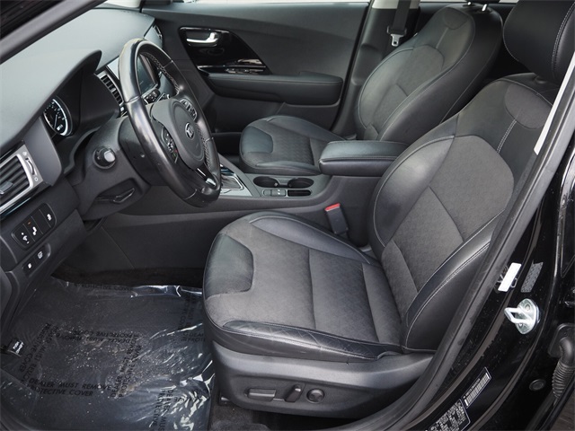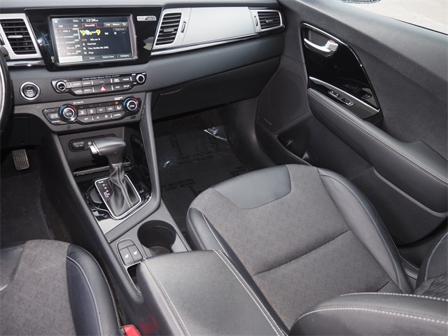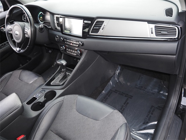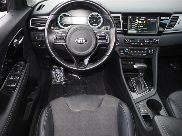 CARFAX One-Owner.Priced below KBB Fair Purchase Price!Odometer is 31783 miles below market average!Aurora Black Pearl 2017 Kia Niro EX FWD Dual Clutch 6-Speed Automatic 1.6L I4 1.6L I4.If you don't drive here, you can't save here!Awards: * 2017 KBB.com 10 Best Hybrid Cars Under $40,000 * 2017 KBB.com 10 Most Awarded BrandsPrice may not include recon fee. 1.6L I4, 4-Wheel Disc Brakes, 6 Speakers, ABS brakes, Air Conditioning, Alloy wheels, AM/FM radio: SiriusXM, Apple CarPlay & Android Auto, Automatic temperature control, Axle Ratio: TBD, Blind spot sensor: warning, Bodyside moldings, Brake assist, Bumpers: body-color, Cargo Net, Carpet Floor Mats, Cloth & Leather-Trimmed Seats, Delay-off headlights, Driver door bin, Driver vanity mirror, Dual front impact airbags, Dual front side impact airbags, Electronic Stability Control, Emergency communication system: UVO eServices 911 Connect, Exterior Parking Camera Rear, Four wheel independent suspension, Front anti-roll bar, Front Bucket Seats, Front Center Armrest, Front dual zone A/C, Front fog lights, Front reading lights, Fully automatic headlights, Heated door mirrors, Heated Front Bucket Seats, Heated front seats, Illuminated entry, Knee airbag, Leather Shift Knob, Low tire pressure warning, Mud Guards, Occupant sensing airbag, Outside temperature display, Overhead airbag, Overhead console, Panic alarm, Passenger door bin, Passenger vanity mirror, Power door mirrors, Power steering, Power windows, Radio: AM/FM/MP3/SiriusXM Audio System, Rear anti-roll bar, Rear seat center armrest, Rear window defroster, Rear window wiper, Remote keyless entry, Roof rack: rails only, Security system, Speed control, Speed-sensing steering, Split folding rear seat, Spoiler, Steering wheel mounted audio controls, Tachometer, Telescoping steering wheel, Tilt steering wheel, Traction control, Trip computer, Turn signal indicator mirrors, Variably intermittent wipers, and Wheels: 16" Alloy w/Full Covers.