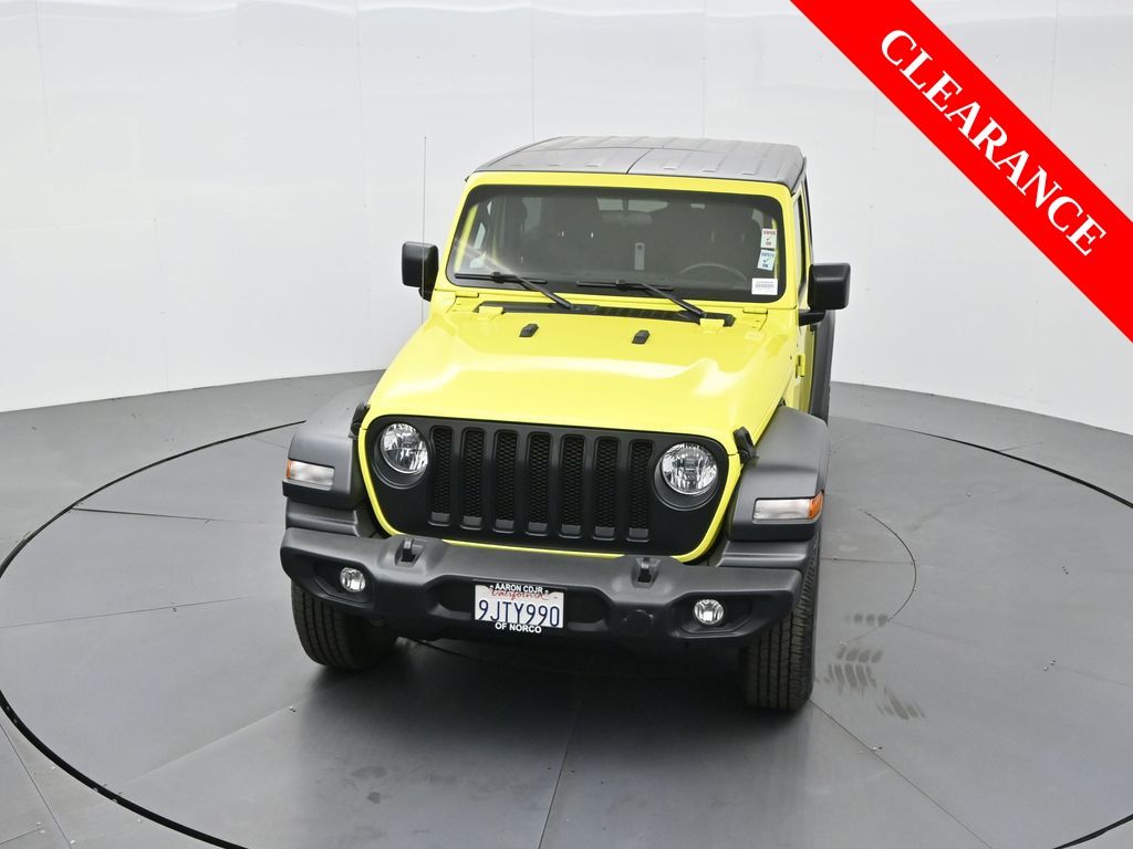 Prior Dealer Loaner / Demo Vehicle Disclosure:This vehicle was previously used as a dealer loaner, demo, or service vehicle. It may have been operated by multiple drivers and may show signs of normal wear and tear. Mileage may vary. See dealer for complete details.2023 Jeep Wrangler Sport S with Customer Preferred Package 23S, Technology Group, 4x4 capability, CARFAX 1-Owner, no accidents reported, regular oil changes, and just over 23,000 miles.This 3.6L V6 Wrangler adds the 8-Speed Automatic 850RE Transmission, Black 3-Piece Hard Top, premium wheels, and deep-tint windows, plus an EPA-rated 20/24 MPG. Para la version en espanol, vea abajo.Equipped with a 7-inch touchscreen, Apple CarPlay, Android Auto, power convenience features, and all-weather floor mats, this Wrangler delivers confident traction, strong off-road manners, and versatile cargo access ideal for outdoor enthusiasts and daily drivers alike.Renowned for its reliability and performance in its segment.We offer a transparent process, thorough reconditioning, easy financing, and knowledgeable staff ready to help. Our no-pressure environment and data-driven guidance ensure you get the right vehicle with confidence. Your satisfaction is always our priority.Take the next step by messaging us for a personalized quote or to arrange a convenient visit. We offer flexible options like virtual consultations and promise to resolve any questions transparently to build your confidence in us.2023 Jeep Wrangler Sport S con el paquete Customer Preferred Package 23S, Technology Group, traccion 4x4, historial CARFAX de 1 dueno, sin accidentes reportados, cambios de aceite regulares y poco mas de 23,000 millas.Este Wrangler con motor V6 3.6L incluye transmision automatica de 8 velocidades, techo rigido de 3 piezas, rines premium y ventanas de privacidad, ademas de un rendimiento EPA de 20/24 MPG.Con pantalla tactil de 7 pulgadas, Apple CarPlay, Android Auto, funciones electricas y tapetes all-weather, ofrece buena traccion, capacidad todoterreno y acceso versatil al espacio de carga, ideal para aventuras y uso diario.Reconocido por su confiabilidad y desempeno dentro de su segmento.Ofrecemos un proceso transparente, reacondicionamiento completo, financiamiento sencillo y un equipo experto listo para ayudarte. Sin presion y con informacion basada en datos, nos enfocamos en tu satisfaccion.Da el siguiente paso y mandanos un mensaje para una cotizacion personalizada o para agendar una visita. Contamos con opciones flexibles y aclaramos todas tus dudas con total transparencia.