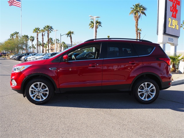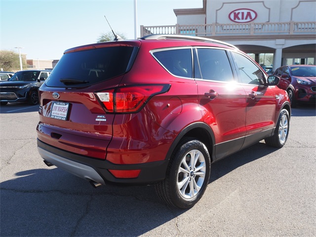 CARFAX One-Owner.Priced below KBB Fair Purchase Price!Odometer is 11970 miles below market average!23/30 City/Highway MPGRuby Red 2019 Ford Escape SEL FWD 6-Speed Automatic 1.5L EcoBoostIf you don't drive here, you can't save here!Price may not include recon fee. Equipment Group 300A, Ford Safe & Smart Package (Adaptive Cruise Control & Fwd Collision Warning, Auto High-Beam Headlamps, Auto-Dimming Rear-View Mirror, Blind Spot Info System w/Cross-Traffic Alert, Lane-Keeping System, Rain-Sensing Wipers, and Windshield Wiper De-Icer), 3.21 Axle Ratio, 4-Wheel Disc Brakes, 6 Speakers, ABS brakes, Air Conditioning, Alloy wheels, AM/FM radio: SiriusXM, AppLink/Apple CarPlay and Android Auto, Automatic temperature control, Brake assist, Bumpers: body-color, Compass, Delay-off headlights, Driver door bin, Driver vanity mirror, Dual front impact airbags, Dual front side impact airbags, Electronic Stability Control, Emergency communication system: SYNC 3 911 Assist, Exterior Parking Camera Rear, FordPass Connect, Four wheel independent suspension, Front anti-roll bar, Front Bucket Seats, Front Center Armrest, Front dual zone A/C, Front fog lights, Front reading lights, Fully automatic headlights, Heated door mirrors, Heated front seats, Illuminated entry, Knee airbag, Leather Shift Knob, Low tire pressure warning, Occupant sensing airbag, Outside temperature display, Overhead airbag, Overhead console, Panic alarm, Passenger door bin, Passenger vanity mirror, Power door mirrors, Power driver seat, Power Liftgate, Power steering, Power windows, Radio data system, Radio: AM/FM Stereo w/MP3 Capable, Rear anti-roll bar, Rear Parking Sensors, Rear seat center armrest, Rear window defroster, Rear window wiper, Remote keyless entry, Roof rack: rails only, Security system, Speed control, Speed-sensing steering, Split folding rear seat, Steering wheel mounted audio controls, SYNC 3 Communications & Entertainment System, Tachometer, Telescoping steering wheel, Tilt steering wheel, Traction control, Trip computer, Variably intermittent wipers, and Wheels: 17" Sparkle Silver-Painted Aluminum.