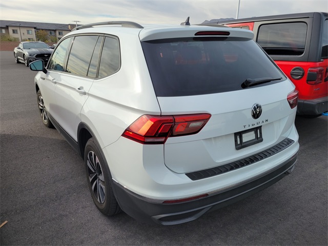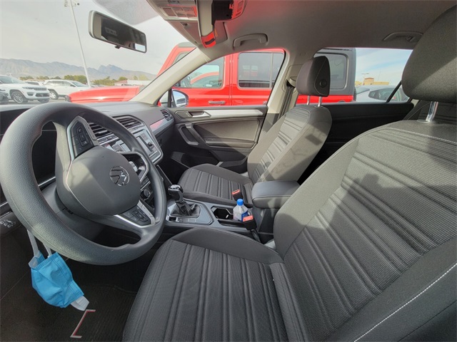 CARFAX One-Owner.Priced below KBB Fair Purchase Price!23/30 City/Highway MPGWhite 2022 Volkswagen Tiguan 2.0T S FWD 8-Speed Automatic with Tiptronic 2.0L TSI DOHCIf you don't drive here, you can't save here!Price may not include recon fee. 3.33 Axle Ratio, 3rd row seats: bench, 4-Wheel Disc Brakes, 4-Wheel Independent Suspension, 6 Speakers, ABS brakes, Air Conditioning, Alloy wheels, AM/FM radio, Brake assist, Bumpers: body-color, Cloth Seating Surfaces, Compass, Delay-off headlights, Driver door bin, Driver vanity mirror, Dual front impact airbags, Dual front side impact airbags, Electronic Stability Control, Emergency communication system: Car-Net, Exterior Parking Camera Rear, Forward collision: FCW w/Autonomous Emergency Braking mitigation, Four wheel independent suspension, Front anti-roll bar, Front Bucket Seats, Front Center Armrest, Front reading lights, Fully automatic headlights, Heated door mirrors, Heated Front Bucket Seats, Heated front seats, Illuminated entry, Leather Shift Knob, Low tire pressure warning, Occupant sensing airbag, Outside temperature display, Overhead airbag, Overhead console, Panic alarm, Passenger door bin, Passenger vanity mirror, Power door mirrors, Power steering, Power windows, Radio data system, Radio: Composition Color AM/FM, Rear anti-roll bar, Rear reading lights, Rear seat center armrest, Rear window defroster, Rear window wiper, Remote keyless entry, Roof rack: rails only, Speed control, Speed-sensing steering, Split folding rear seat, Spoiler, Steering wheel mounted audio controls, Tachometer, Telescoping steering wheel, Tilt steering wheel, Traction control, Trip computer, Turn signal indicator mirrors, Variably intermittent wipers, and Wheels: 17" 2-Tone Machined Twin 5-Spoke Alloy.