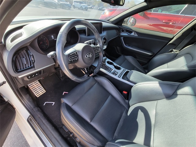 Recent Arrival!CARFAX One-Owner.Snow White Pearl 2020 Kia Stinger GT RWD 8-Speed Automatic V6If you don't drive here, you can't save here!Awards: * JD Power Automotive Performance, Execution and Layout (APEAL) StudyPrice may not include recon fee. 4-Wheel Disc Brakes, 9 Speakers, ABS brakes, Air Conditioning, Alloy wheels, AM/FM radio: SiriusXM, Anti-whiplash front head restraints, Apple CarPlay & Android Auto, Auto-dimming Rear-View mirror, Automatic temperature control, Brake assist, Bumpers: body-color, Carpeted Floor Mat, Delay-off headlights, Driver door bin, Driver vanity mirror, Dual front impact airbags, Dual front side impact airbags, Electronic Stability Control, Emergency communication system: UVO eServices, Exterior Parking Camera Rear, Four wheel independent suspension, Front anti-roll bar, Front Bucket Seats, Front Center Armrest, Front dual zone A/C, Front reading lights, Fully automatic headlights, Heated door mirrors, Heated Front Bucket Seats, Heated front seats, Illuminated entry, Knee airbag, Leather Seat Trim, Low tire pressure warning, Occupant sensing airbag, Outside temperature display, Overhead airbag, Overhead console, Panic alarm, Passenger door bin, Passenger vanity mirror, Power door mirrors, Power driver seat, Power passenger seat, Power steering, Power windows, Radio: AM/FM/MP3/HD/SiriusXM Audio System, Rear air conditioning, Rear anti-roll bar, Rear Bumper Applique, Rear reading lights, Rear seat center armrest, Rear window defroster, Remote keyless entry, Security system, Speed control, Speed-sensing steering, Speed-Sensitive Wipers, Split folding rear seat, Spoiler, Sport steering wheel, Steering wheel mounted audio controls, Tachometer, Telescoping steering wheel, Tilt steering wheel, Traction control, Trip computer, Turn signal indicator mirrors, Variably intermittent wipers, and Wheels: 19" x 8.0 Front & 19" x 8.5 Rear Alloy.
