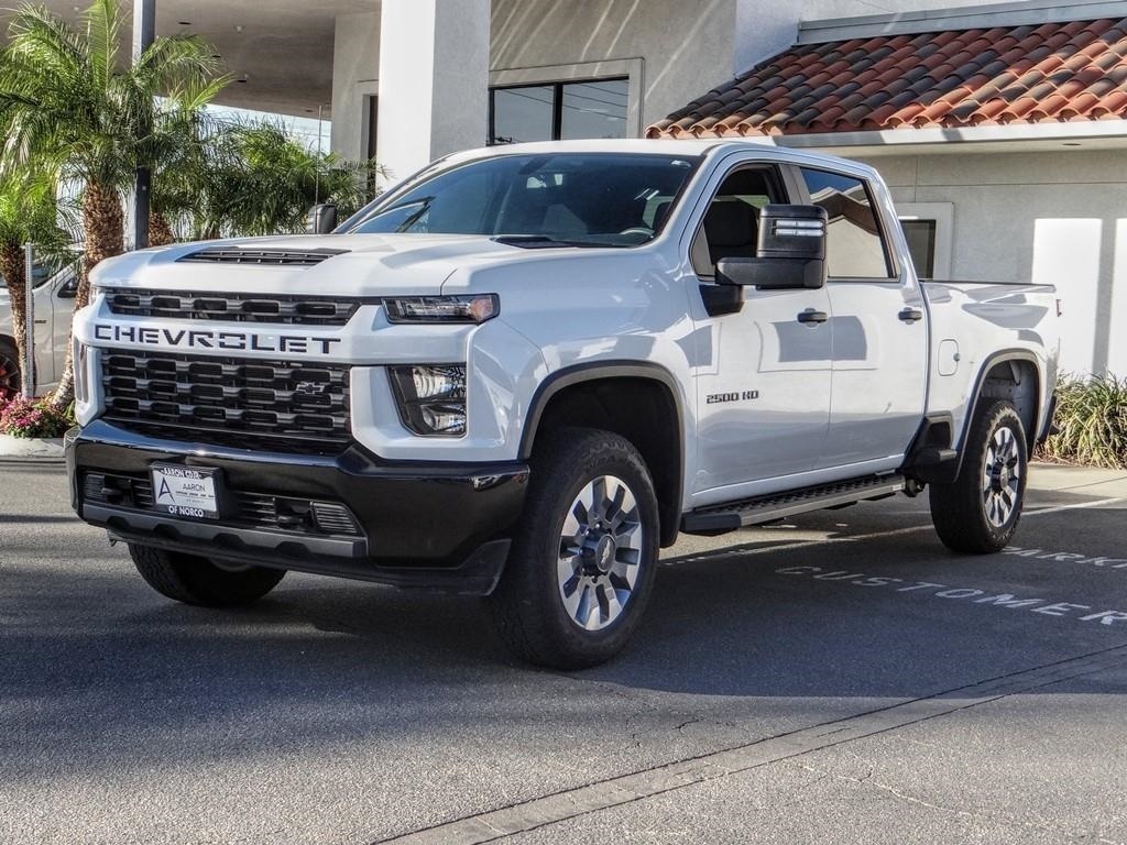 Clean CARFAX. CARFAX One-Owner.Silverado 2500HD Custom, 4D Crew Cab, 6.6L V8, 6-Speed Automatic, 4WD, Summit White, Black Cloth, 170 Amp Alternator, 2-Speed Electronic Shift Transfer Case, 3.5" Diagonal Monochromatic Display DIC, Black Mirror Caps, Bluetooth® For Phone, Body Color Front Grille, Color-Keyed Carpeting Floor Covering, Deep-Tinted Glass, Electronic Cruise Control w/Set & Resume Speed, Front Rubberized Vinyl Floor Mats, Heated Vertical Trailering Mirrors, Locking Tailgate, Manual Tailgate Function w/No EZ Lift, Manual Tilt-Wheel Steering Column, Power Door Locks, Power Front Windows w/Driver Express Up/Down, Power Front Windows w/Passenger Express Down, Power Rear Windows w/Express Down, Preferred Equipment Group 1CX, Rear 60/40 Folding Bench Seat (Folds Up), Rear Rubberized Vinyl Floor Mats, Remote Keyless Entry, Suspension Package.