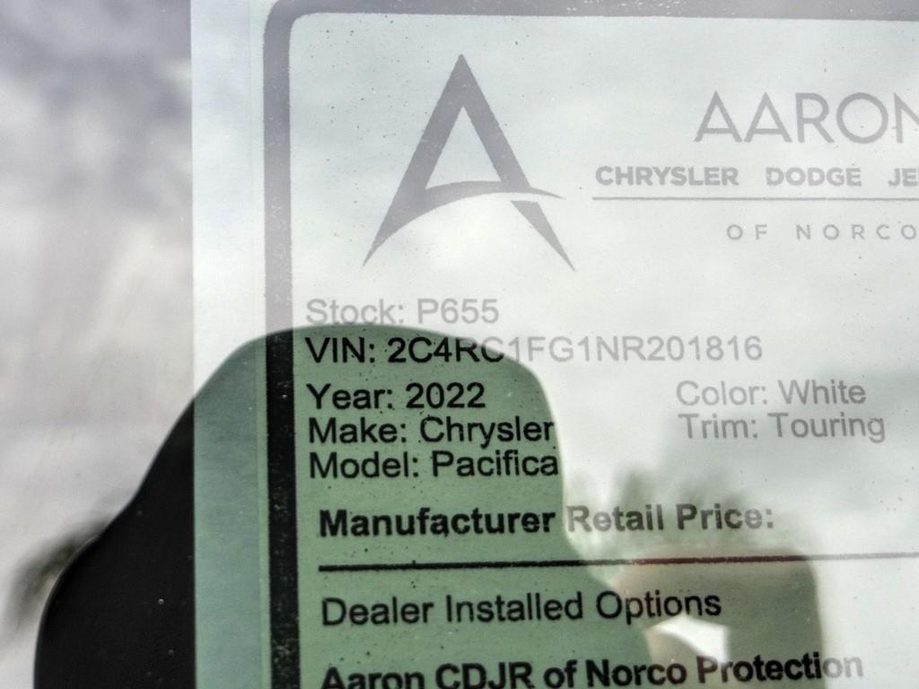 Bright White Clearcoat 2022 Chrysler Pacifica Touring FWD 9-Speed 948TE Automatic 3.6L V6 24V VVT19/28 City/Highway MPG Price includes: $500 - 2022 MY Military Program 39CNB. Exp. 01/03/2023