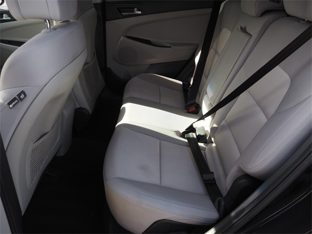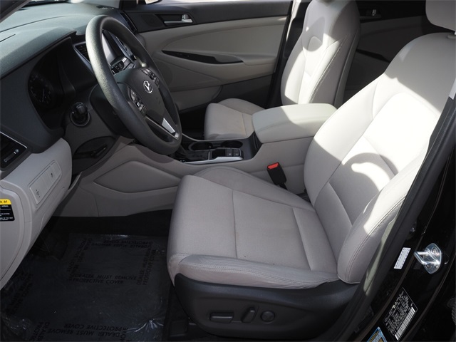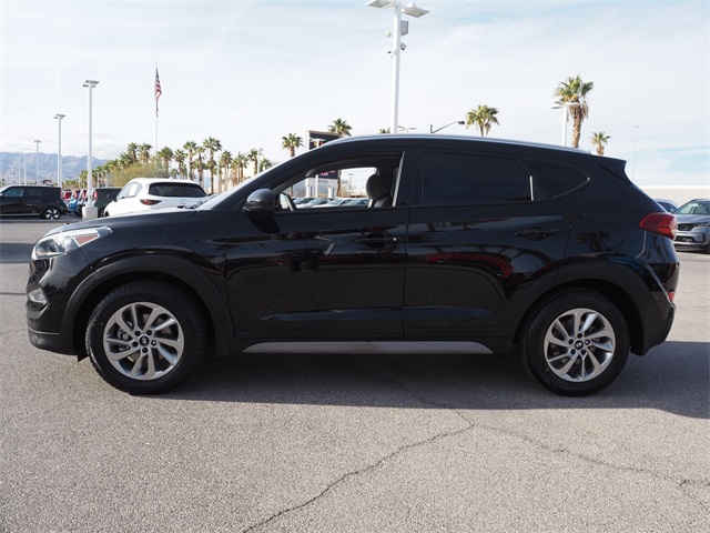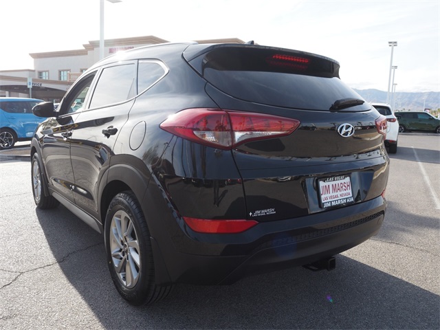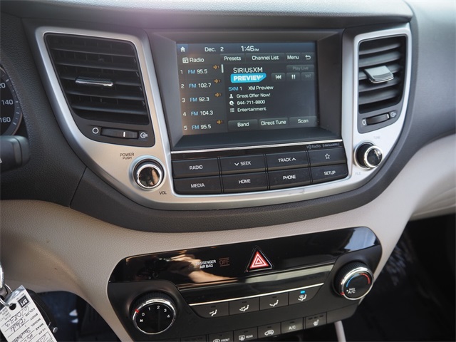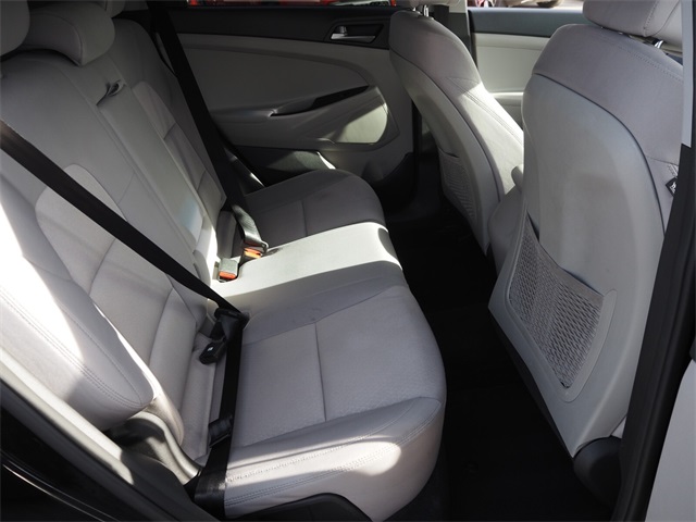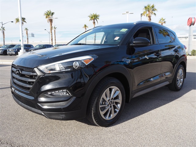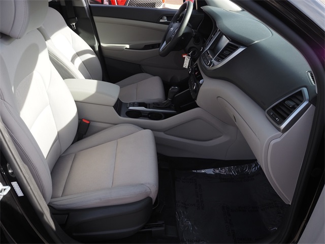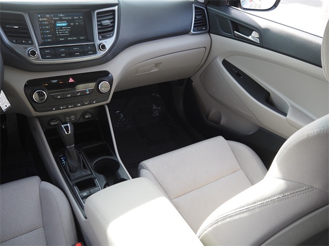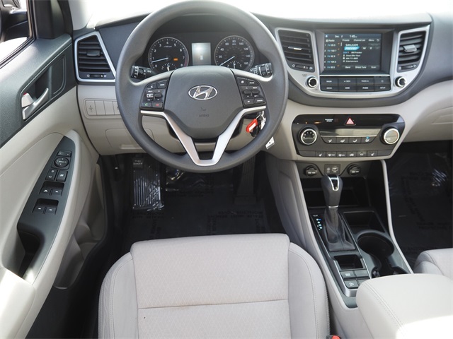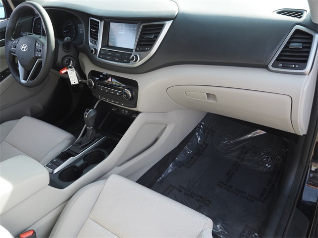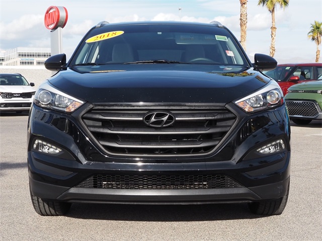 CARFAX One-Owner.23/30 City/Highway MPGBlack Noir Pearl 2018 Hyundai Tucson SEL FWD 6-Speed Automatic with Shiftronic 2.0L DOHCIf you don't drive here, you can't save here!Awards: * 2018 KBB.com 10 Best SUVs Under $25,000 * 2018 KBB.com 10 Most Awarded Brands * 2018 KBB.com 5-Year Cost to Own AwardsPrice may not include recon fee. 17" x 7.0J Alloy Wheels, 4-Wheel Disc Brakes, 6 Speakers, ABS brakes, Air Conditioning, Alloy wheels, AM/FM radio: SiriusXM, Apple CarPlay & Android Auto, Axle Ratio: 3.51, Brake assist, Bumpers: body-color, Delay-off headlights, Driver door bin, Driver vanity mirror, Dual front impact airbags, Dual front side impact airbags, Electronic Stability Control, Exterior Parking Camera Rear, Four wheel independent suspension, Front anti-roll bar, Front Bucket Seats, Front Center Armrest, Front fog lights, Front reading lights, Fully automatic headlights, Heated door mirrors, Heated Front Bucket Seats, Heated front seats, Illuminated entry, Low tire pressure warning, Occupant sensing airbag, Outside temperature display, Overhead airbag, Overhead console, Panic alarm, Passenger door bin, Passenger vanity mirror, Power door mirrors, Power driver seat, Power steering, Power windows, Radio: AM/FM/HD Radio/MP3 Audio System, Rear anti-roll bar, Rear seat center armrest, Rear window defroster, Rear window wiper, Remote keyless entry, Roof rack: rails only, Security system, Speed control, Speed-sensing steering, Split folding rear seat, Spoiler, Steering wheel mounted audio controls, Tachometer, Telescoping steering wheel, Tilt steering wheel, Traction control, Trip computer, Variably intermittent wipers, and YES Essentials Cloth Seat Trim.