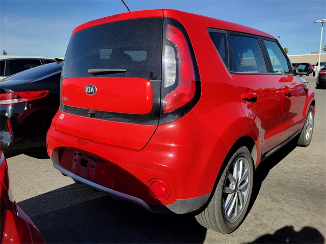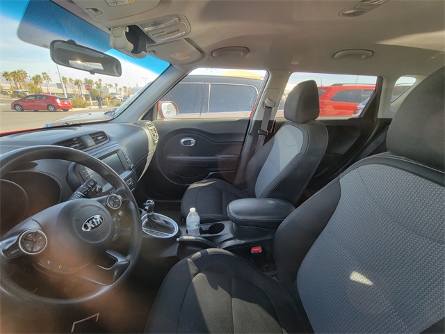 Odometer is 5468 miles below market average!25/30 City/Highway MPGInferno Red 2018 Kia Soul Plus FWD 6-Speed Automatic with Sportmatic I4If you don't drive here, you can't save here!Awards: * 2018 KBB.com 10 Best Used Compact Cars Under $15,000 * 2018 KBB.com 10 Coolest New Cars Under $20,000Price may not include recon fee. 17" Alloy Wheels, 4-Wheel Disc Brakes, 6 Speakers, 6-Way Adjustable Driver's Seat, ABS brakes, Air Conditioning, Alloy wheels, AM/FM radio: SiriusXM, Apple CarPlay & Android Auto, Automatic temperature control, Brake assist, Bumpers: body-color, Carpeted Floor Mat, Cloth Seat Trim, Driver door bin, Driver vanity mirror, Dual front impact airbags, Dual front side impact airbags, Electronic Stability Control, Emergency communication system: UVO eServices, Exterior Parking Camera Rear, Front anti-roll bar, Front Bucket Seats, Front Center Armrest, Front fog lights, Front reading lights, Front wheel independent suspension, Fully automatic headlights, Heated door mirrors, Illuminated entry, Low tire pressure warning, Occupant sensing airbag, Outside temperature display, Overhead airbag, Overhead console, Panic alarm, Passenger door bin, Passenger vanity mirror, Power door mirrors, Power steering, Power windows, Radio: AM/FM/MP3 Audio System, Rear seat center armrest, Rear window defroster, Rear window wiper, Remote keyless entry, Speed control, Speed-sensing steering, Split folding rear seat, Steering wheel mounted audio controls, Tachometer, Telescoping steering wheel, Tilt steering wheel, Traction control, Trip computer, and Variably intermittent wipers.