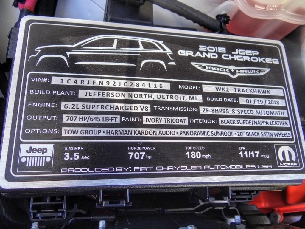 Clean CARFAX.Grand Cherokee Trackhawk, 4D Sport Utility, 6.2L Supercharged HEMI V8 SRT, 8-Speed Automatic, 4WD, Ivory 3-Coat.Awards: * 2018 KBB.com 10 Most Awarded Brands