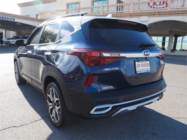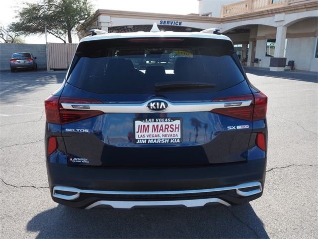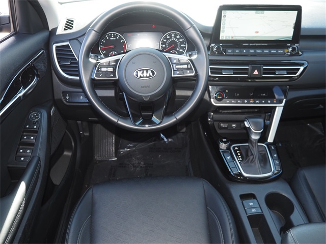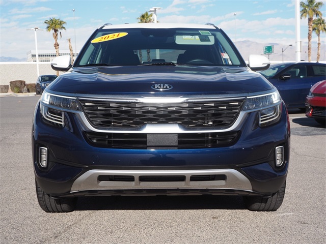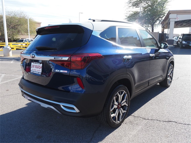 Recent Arrival!CARFAX One-Owner.Priced below KBB Fair Purchase Price!25/30 City/Highway MPGDark Ocean Blue/White Roof 2021 Kia Seltos SX AWD 7-Speed Automatic I4If you don't drive here, you can't save here!Price may not include recon fee. 18" Alloy Wheels, 4.643 Axle Ratio, 4-Wheel Disc Brakes, 8 Speakers, ABS brakes, Air Conditioning, Alloy wheels, AM/FM radio: SiriusXM, Apple CarPlay & Android Auto, Auto-dimming Rear-View mirror, Automatic temperature control, Brake assist, Bumpers: body-color, Cargo Net (Floor), Carpeted Floor Mats, Delay-off headlights, Driver door bin, Driver vanity mirror, Dual front impact airbags, Dual front side impact airbags, Electronic Stability Control, Emergency communication system, Exterior Parking Camera Rear, Four wheel independent suspension, Front anti-roll bar, Front Bucket Seats, Front Center Armrest, Front fog lights, Front reading lights, Fully automatic headlights, Heated door mirrors, Heated Front Bucket Seats, Heated front seats, Illuminated entry, Leather Seat Trim, Leather Shift Knob, Low tire pressure warning, Navigation System, Occupant sensing airbag, Outside temperature display, Overhead airbag, Overhead console, Panic alarm, Passenger door bin, Passenger vanity mirror, Power door mirrors, Power driver seat, Power steering, Power windows, Radio: AM/FM/MP3 Display Audio, Rear seat center armrest, Rear window defroster, Rear window wiper, Remote keyless entry, Roof rack: rails only, Security system, Speed control, Speed-sensing steering, Split folding rear seat, Spoiler, Steering wheel mounted audio controls, Tachometer, Telescoping steering wheel, Tilt steering wheel, Traction control, Trip computer, Turn signal indicator mirrors, Variably intermittent wipers, and Wheel Locks.