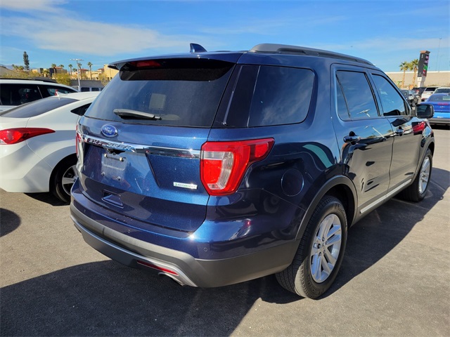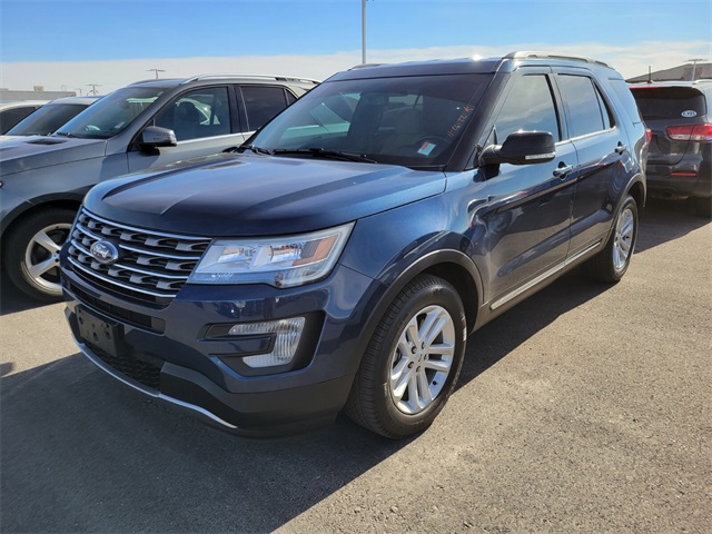 CARFAX One-Owner.Priced below KBB Fair Purchase Price!Odometer is 32200 miles below market average!19/27 City/Highway MPGBlue 2017 Ford Explorer XLT FWD 6-Speed Automatic with Select-Shift 2.3L I4 EcoBoostIf you don't drive here, you can't save here!Awards: * 2017 KBB.com Brand Image Awards * 2017 KBB.com 10 Most Awarded BrandsPrice may not include recon fee. 18" Painted Aluminum Wheels, 3.39 Non-Limited-Slip Axle Ratio, 3rd row seats: split-bench, 4-Wheel Disc Brakes, 6 Speakers, ABS brakes, Air Conditioning, Alloy wheels, AM/FM radio: SiriusXM, Brake assist, Bumpers: body-color, CD player, Compass, Delay-off headlights, Driver door bin, Driver vanity mirror, Dual front impact airbags, Dual front side impact airbags, Electronic Stability Control, Emergency communication system: 911 Assist, Exterior Parking Camera Rear, Four wheel independent suspension, Front anti-roll bar, Front Bucket Seats, Front Center Armrest, Front fog lights, Front reading lights, Fully automatic headlights, Heated door mirrors, Illuminated entry, Knee airbag, Leather steering wheel, Low tire pressure warning, Occupant sensing airbag, Outside temperature display, Overhead airbag, Overhead console, Panic alarm, Passenger door bin, Passenger vanity mirror, Power door mirrors, Power driver seat, Power passenger seat, Power steering, Power windows, Radio: AM/FM Stereo w/Single-CD/MP3 Capable, Rear air conditioning, Rear anti-roll bar, Rear Parking Sensors, Rear reading lights, Rear seat center armrest, Rear window defroster, Rear window wiper, Remote keyless entry, Roof rack: rails only, Security system, Speed control, Speed-sensing steering, Speed-Sensitive Wipers, Split folding rear seat, Spoiler, Steering wheel mounted audio controls, SYNC Communication & Entertainment System, Tachometer, Telescoping steering wheel, Tilt steering wheel, Traction control, Trip computer, Turn signal indicator mirrors, and Variably intermittent wipers.