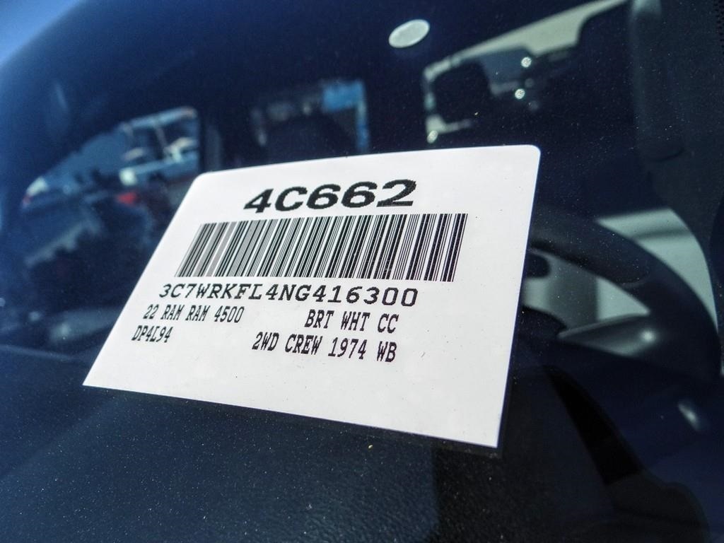 Bright White Clearcoat 2022 Ram 4500HD SLT RWD Aisin 6-Speed Automatic Cummins 6.7L I6 Turbodiesel $1,000 - Exp. 01/02/2024