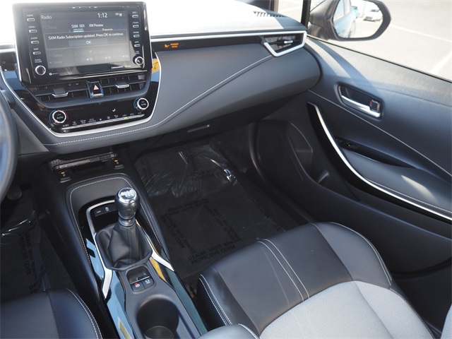 CARFAX One-Owner.Priced below KBB Fair Purchase Price!Odometer is 3985 miles below market average!28/36 City/Highway MPGMagnetic Gray Metallic 2022 Toyota Corolla Hatchback XSE FWD 6-Speed Manual 2.0L I4If you don't drive here, you can't save here!Price may not include recon fee. 4-Wheel Disc Brakes, 6 Speakers, ABS brakes, Air Conditioning, Alloy wheels, AM/FM radio: SiriusXM, Apple CarPlay/Android Auto, Auto High-beam Headlights, Automatic temperature control, Blind Spot Monitor (BSM), Brake assist, Bumpers: body-color, Compass, Delay-off headlights, Driver door bin, Driver vanity mirror, Dual front impact airbags, Dual front side impact airbags, Dual Mode Air Conditioner, Electronic Stability Control, Emergency communication system: Safety Connect with 1-year trial, Exterior Parking Camera Rear, Fabric/Leather Seat Trim, Four wheel independent suspension, Front anti-roll bar, Front Bucket Seats, Front Center Armrest, Front dual zone A/C, Front Fog & Driving Lamp, Front fog lights, Front reading lights, Heated door mirrors, Heated front seats, Heated Sport Front Seats, Htd Power Outside Mirrors w/Turn Signal Indicators, Illuminated entry, Knee airbag, Leather Shift Knob, Low tire pressure warning, MPH Speedometer, Occupant sensing airbag, Outside temperature display, Overhead airbag, Overhead console, Panic alarm, Passenger door bin, Passenger vanity mirror, Piano Black Inner Door Garnish, Power door mirrors, Power driver seat, Power steering, Power windows, Radio data system, Radio: Audio Plus, Rear anti-roll bar, Rear seat center armrest, Rear side impact airbag, Rear window defroster, Rear window wiper, Remote keyless entry, Security system, Speed control, Speed-sensing steering, Split folding rear seat, Spoiler, Steering wheel mounted audio controls, Tachometer, Telescoping steering wheel, Tilt steering wheel, Traction control, Trip computer, Turn signal indicator mirrors, Variably intermittent wipers, and Wheels: 18" Bright Machine-Finished Aluminum.