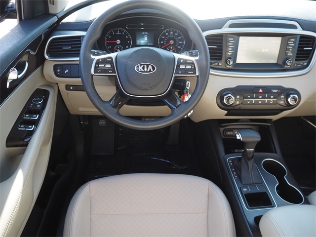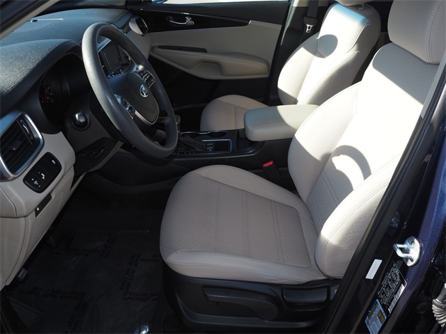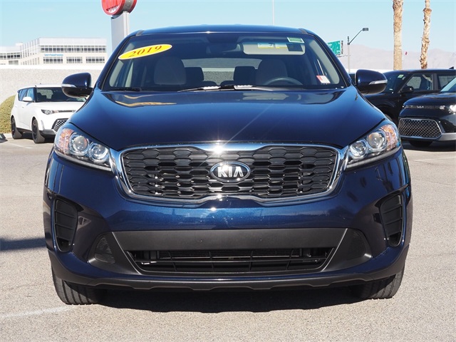 CARFAX One-Owner.Priced below KBB Fair Purchase Price!Odometer is 22405 miles below market average!22/29 City/Highway MPGBlaze Blue 2019 Kia Sorento LX FWD 6-Speed Automatic with Sportmatic I4If you don't drive here, you can't save here!Price may not include recon fee. 17" x 7.0" Alloy Wheels, 3.51 Axle Ratio, 3rd row seats: split-bench, 4-Wheel Disc Brakes, 6 Speakers, ABS brakes, Air Conditioning, Alloy wheels, AM/FM radio, Brake assist, Bumpers: body-color, Cargo Net (Envelope), Carpeted Floor Mats (7-Passenger), Delay-off headlights, Driver door bin, Driver vanity mirror, Dual front impact airbags, Dual front side impact airbags, Electronic Stability Control, Exterior Parking Camera Rear, Four wheel independent suspension, Front anti-roll bar, Front Bucket Seats, Front Center Armrest, Front reading lights, Fully automatic headlights, Heated door mirrors, Illuminated entry, Low tire pressure warning, Occupant sensing airbag, Outside temperature display, Overhead airbag, Overhead console, Panic alarm, Passenger door bin, Passenger vanity mirror, Power door mirrors, Power steering, Power windows, Radio data system, Radio: UVO Play w/AM/FM/MP3, Rear anti-roll bar, Rear seat center armrest, Rear window defroster, Rear window wiper, Remote keyless entry, Security system, Speed control, Speed-sensing steering, Split folding rear seat, Spoiler, Steering wheel mounted audio controls, Tachometer, Telescoping steering wheel, Tilt steering wheel, Traction control, Trip computer, Turn signal indicator mirrors, Variably intermittent wipers, Wheel Locks, and YES Essentials Cloth Seat Trim.