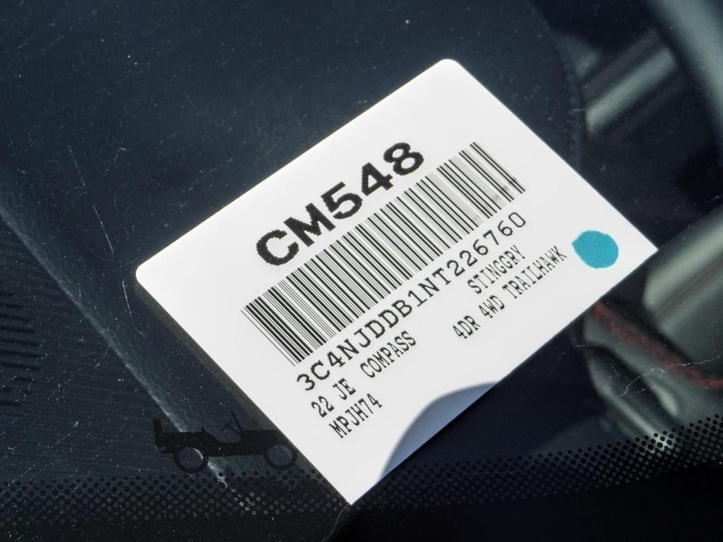 Sting-Gray Clearcoat 2022 Jeep Compass Trailhawk 4WD 9-Speed 948TE Automatic 2.4L I4 4WD.22/30 City/Highway MPG Price includes: $1000 - 2022 National Retail Consumer Cash (Type 1/B) 22CN1. Exp. 01/03/2023