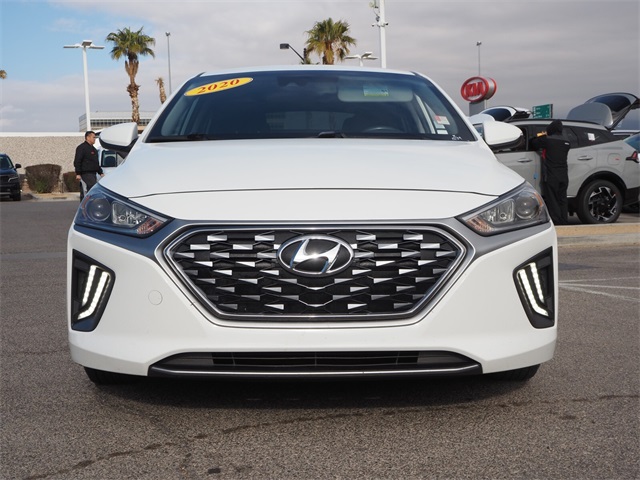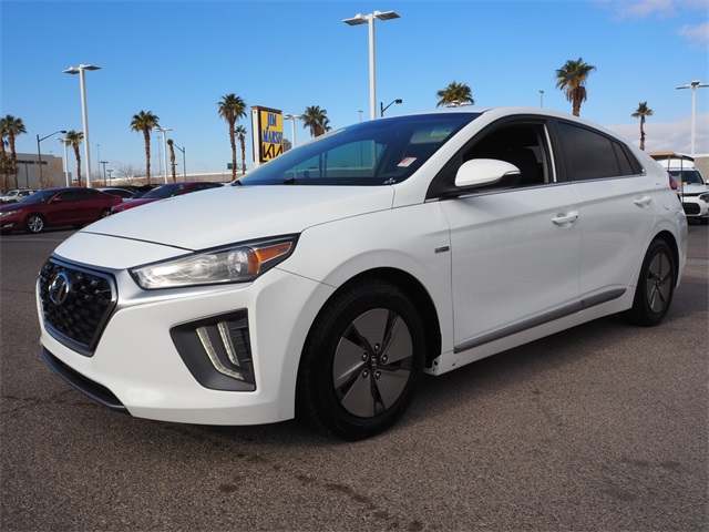 55/54 City/Highway MPGCeramic White 2020 Hyundai Ioniq Hybrid SE FWD 6-Speed EcoShift Dual Clutch I4 I4.If you don't drive here, you can't save here!Price may not include recon fee. Option Group 01, I4, 4-Wheel Disc Brakes, 6 Speakers, ABS brakes, Air Conditioning, Alloy wheels, AM/FM radio: SiriusXM, Apple CarPlay & Android Auto, Auto High-beam Headlights, Automatic temperature control, Bodyside moldings, Brake assist, Bumpers: body-color, Cargo Net, Carpeted Floor Mats, Delay-off headlights, Driver door bin, Driver vanity mirror, Dual front impact airbags, Dual front side impact airbags, Electronic Stability Control, Emergency communication system: Blue Link Connected Care (3-year subscription), Exterior Parking Camera Rear, Four wheel independent suspension, Front anti-roll bar, Front Bucket Seats, Front Center Armrest, Front dual zone A/C, Front reading lights, Fully automatic headlights, Heated door mirrors, Heated Front Bucket Seats, Heated front seats, Illuminated entry, Knee airbag, Leather Shift Knob, Low tire pressure warning, Occupant sensing airbag, Outside temperature display, Overhead airbag, Overhead console, Panic alarm, Passenger door bin, Passenger vanity mirror, Power door mirrors, Power driver seat, Power steering, Power windows, Premium Cloth Seating Surfaces, Radio: AM/FM Display Audio, Rear seat center armrest, Rear window defroster, Remote keyless entry, Security system, Speed control, Speed-sensing steering, Split folding rear seat, Spoiler, Steering wheel mounted audio controls, Tachometer, Telescoping steering wheel, Tilt steering wheel, Traction control, Trip computer, Turn signal indicator mirrors, Variably intermittent wipers, Wheel Locks, and Wheels: 15" x 6.0J Eco-Spoke Alloy (SE Design)