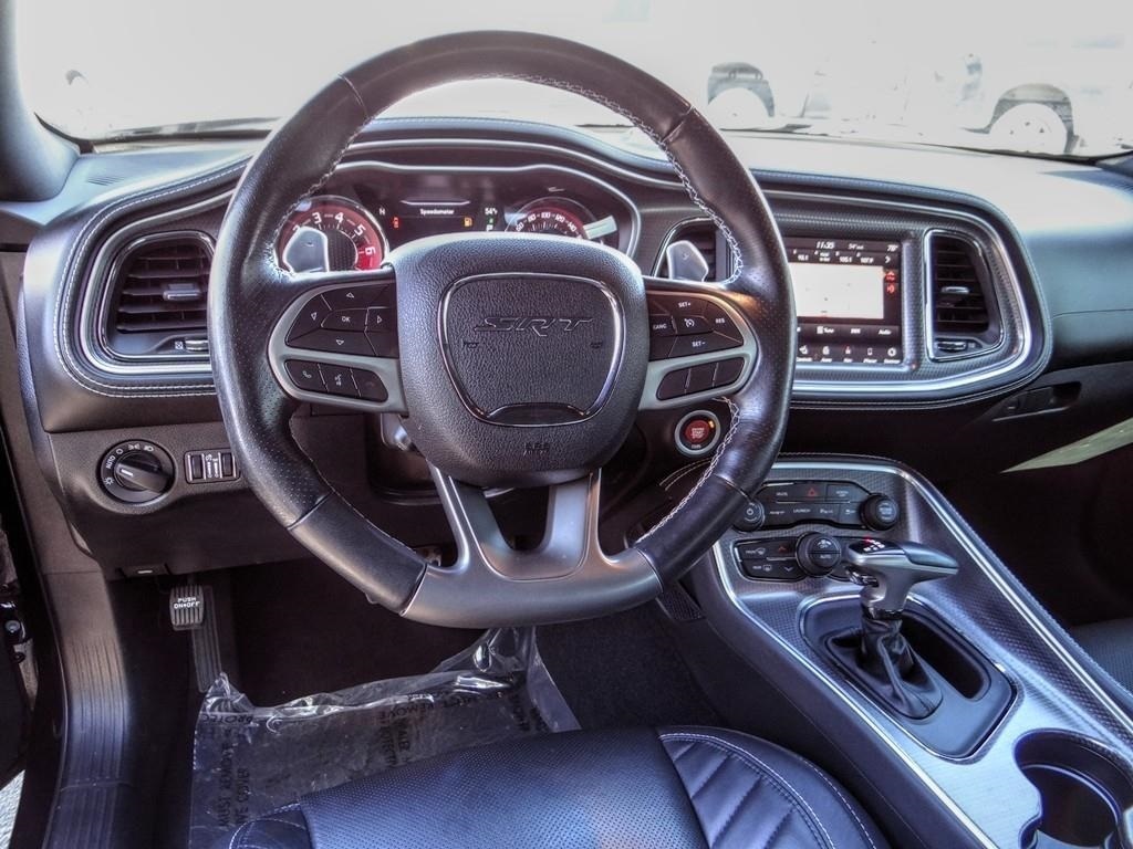 Clean CARFAX. CARFAX One-Owner.Challenger SRT Hellcat Torque Flite, 2D Coupe, 6.2L V8 Supercharged, 8-Speed Automatic, RWD, Pitch Black Clearcoat, Black Leather, 18 Speakers Premium Audio System, ABS brakes, Alloy wheels, Blind Spot & Cross Path Detection, Compass, Driver Convenience Group, Electronic Stability Control, Front dual zone A/C, harman/kardon Audio Group w/Subwoofer, harman/kardon GreenEdge Amp, Heated door mirrors, Heated front seats, Hellcat Logo Laguna Leather Seat, High-Intensity Discharge Headlamps, Illuminated entry, Laguna Leather Package, Low tire pressure warning, Navigation System, ParkView Rear Back-Up Camera, Power Multi-Function Foldaway Mirrors, Premium Laguna Door Trim Panel, Remote keyless entry, Surround Sound, Traction control, Trunk Mounted Subwoofer, Ventilated Front Seats.