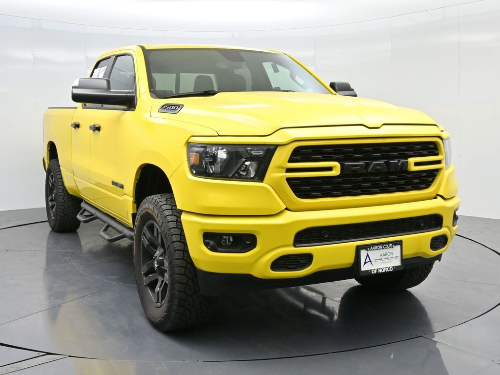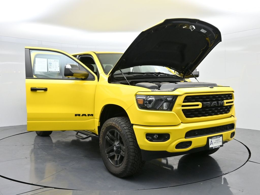 FACTORY WARRANTY, LIFE TIME WARRANTY, 1500 Big Horn/Lone Star, 4D Quad Cab, HEMI 5.7L V8 Multi Displacement VVT eTorque, 8-Speed Automatic, RWD, 115V Auxiliary Power Outlet, 3 Rear Seat Head Restraints, 4 Way Front Headrests, 400W Inverter, 4G LTE Wi-Fi Hot Spot, 8.4" Touchscreen Display, 9 Amplified Speakers w/Subwoofer, Accent Color Door Handles, Accent Color Premium Power Mirrors, Air Conditioning ATC w/Dual Zone Control, Anti-Spin Differential Rear Axle, Apple CarPlay, Auto-Dimming Exterior Driver Mirror, Auto-Dimming Rear-View Mirror, Big Horn Badge, Big Horn Level 2 Equipment Group (DISC), Black Exterior Mirrors, Black Exterior Truck Badging, Black Headlamp Bezels, Black Interior Accents, Black Painted Exterior Mirrors Caps, Black Premium Power Mirrors, Bluetooth Handsfree Phone & Audio, Body Color Front Bumper, Body Color Rear Bumper w/Step Pads, Bucket Seats, Center Console Parts Module, Class IV Receiver Hitch, Cluster 7.0" TFT Color Display, Connectivity - US/Canada, Convex Wide-Angle Mirror Insert, Deluxe Cloth Bucket Seats, Dual Exhaust w/Black Tips, Exterior Mirrors Courtesy Lamps, Exterior Mirrors w/Heating Element, Exterior Mirrors w/Supplemental Signals, For Details, Visit DriveUconnect.com, For More Info, Call 800-643-2112, Front Fog Lamps, Front Seat Back Map Pockets, Full Length Floor Console, Glove Box Lamp, Google Android Auto, GPS Antenna Input, Grille Surround 1 Black Texture 2 Black, Heated Front Seats, Heated Steering Wheel, Integrated Center Stack Radio, LED Footwell Lighting, Low tire pressure warning, Manual Adjust 4-Way Front Passenger Seat, Media Hub w/2 Charge Only USBs, Night Edition, Overhead airbag, ParkSense Front/Rear Park Assist w/Stop, ParkView Rear Back-Up Camera, Power 2-Way Driver Lumbar Adjust, Power 8-Way Driver Seat, Power Adjustable Pedals, Power-Folding Mirrors, Quick Order Package 27Z Big Horn, Radio: Uconnect 5 W w/8.4" Display, RAM Grille Badge - Black, Rear 60/40 Folding Seat, Rear Dome w/On/Off Switch Lamp, Rear Power Sliding Window, Rear Window Defroster, Remote Start System, Security Alarm, SiriusXM Satellite Radio, Sun Visors w/Illuminated Vanity Mirrors, Universal Garage Door Opener, USB Host Flip, Wheels: 20" x 9.0" Premium Paint/Polished.For help with any Vehicle needs please call us directly at 951-621-1288.Clean CARFAX.