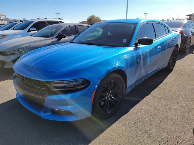 Recent Arrival!CARFAX One-Owner.Priced below KBB Fair Purchase Price!B5 Blue Pearlcoat 2018 Dodge Charger R/T RWD 8-Speed Automatic HEMI 5.7L V8 Multi Displacement VVT Black Cloth.If you don't drive here, you can't save here!Price may not include recon fee. Blacktop Package (Black 1-Piece Performance Spoiler, Black-Edged Premium Floormats, Blacktop R/T Badge, Dark Brushed II Interior Accents, Dodge Grille Badge, Gloss Black I/P Cluster Trim Rings, Satin Black Charger Decklid Badge, and Wheels: 20" x 8.0" Gloss Black Painted Aluminum), Quick Order Package 29N R/T (R/T Badge and Trailer Sway Damping), Black Cloth, 4-Wheel Disc Brakes, 6 Speakers, ABS brakes, Air Conditioning, All Speed Traction Control, Alloy wheels, AM/FM radio: SiriusXM, Anti-whiplash front head restraints, Apple CarPlay/Android Auto, Auto-dimming Rear-View mirror, Automatic temperature control, Body Color Exterior Mirrors, Brake assist, Bumpers: body-color, Cloth Sport Seat, Compass, Delay-off headlights, Driver door bin, Driver vanity mirror, Dual front impact airbags, Dual front side impact airbags, Electronic Stability Control, Emergency communication system: SiriusXM Guardian, Exterior Mirrors w/Heating Element, Four wheel independent suspension, Front anti-roll bar, Front Bucket Seats, Front Center Armrest, Front dual zone A/C, Front fog lights, Front reading lights, Fully automatic headlights, Garage door transmitter: HomeLink, Heated door mirrors, Heated Front Seats, Heated front seats, Illuminated entry, Knee airbag, Leather Shift Knob, Low tire pressure warning, Manufacturer's Statement of Origin, Occupant sensing airbag, Outside temperature display, Overhead airbag, Overhead console, Panic alarm, ParkView Rear Back-Up Camera, Passenger door bin, Passenger vanity mirror, Power 4-Way Driver Lumbar Adjust, Power 8-Way Driver Seat, Power door mirrors, Power driver seat, Power steering, Power windows, Radio data system, Radio: Uconnect 4C w/8.4" Display, Rear anti-roll bar, Rear Armrest w/Cupholder Seat, Rear reading lights, Rear seat center armrest, Rear window defroster, Remote keyless entry, Rhombi 2-Pc Wheel Center Cap, Speed control, Speed-Sensitive Wipers, Split folding rear seat, Spoiler, Steering wheel mounted audio controls, Tachometer, Telescoping steering wheel, Tilt steering wheel, Traction control, Trip computer, Variably intermittent wipers, and Wheels: 20" x 8.0" Premium Painted Aluminum.